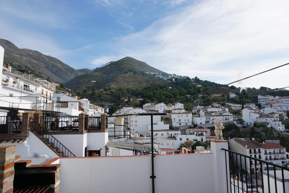 Great town house in Cómpeta. If you are looking for a home in a quiet place, without noise or pollution, with good views, with all the services of a city at hand and at a very reasonable price, this is a perfect option. The house was completely renovated in 2005. It consists of four floors. The first has a toilet, a small living room and a good bedroom. Going up to the second floor we find a bedroom, a complete bathroom, kitchen and living room. From the living room there is access to a workshop that has access to the street behind the house. The owner of the property can park a car at this exit. On the third floor there are two great bedrooms. And on the fourth floor there is another very large one, with access to a fantastic terrace that has a large kitchen, barbecue, solar panels, a water tank and incredible panoramic views of the town and the sea.