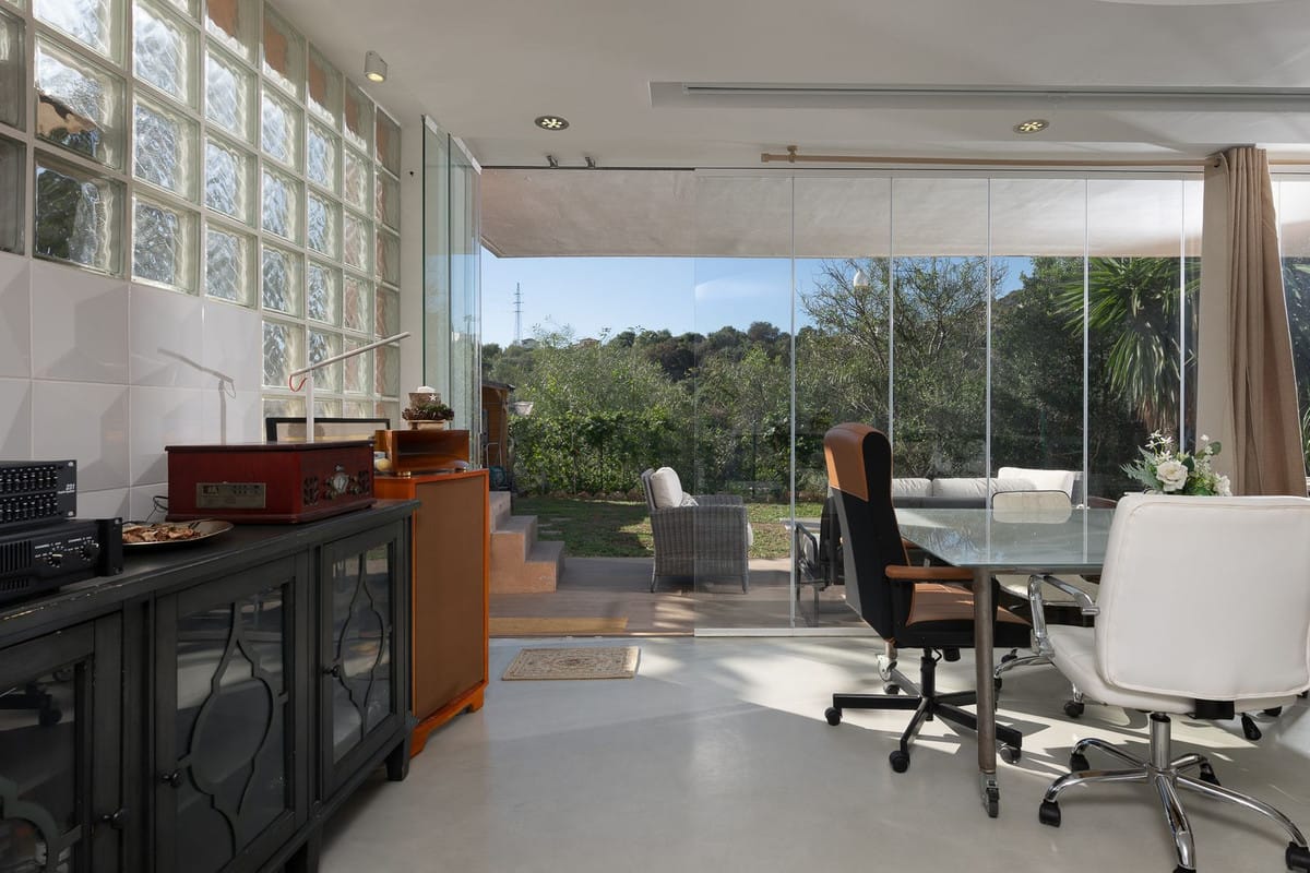 The open-plan living area leads to a stylish terrace with a bioclimatic pergola and outdoor jacuzzi, creating a private oasis for relaxation. The house comes fully furnished, and includes air conditioning, underfloor heating, double glazing, electric shutters, alarm system, and an excellent A-rated energy certificate. A 6.3 kWh solar panel system ensures extremely low annual electricity costs (approx. 300–500€).