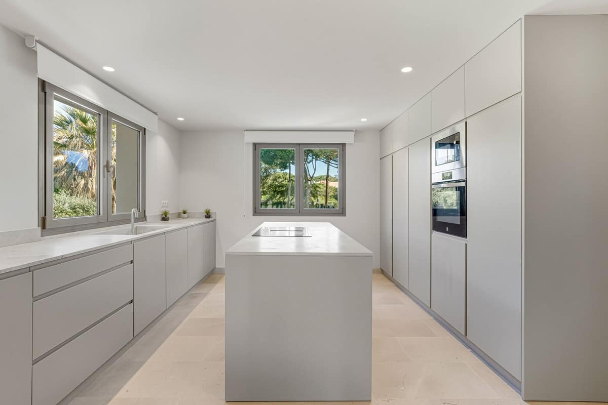 This bright detached villa offers an abundance of privacy surrounded by many mature pine trees and set within a 2,850 m2 landscaped garden, very attractively designed including a swimming pool, large terrace and barbecue area. and boasts many spacious, sunny terraces.