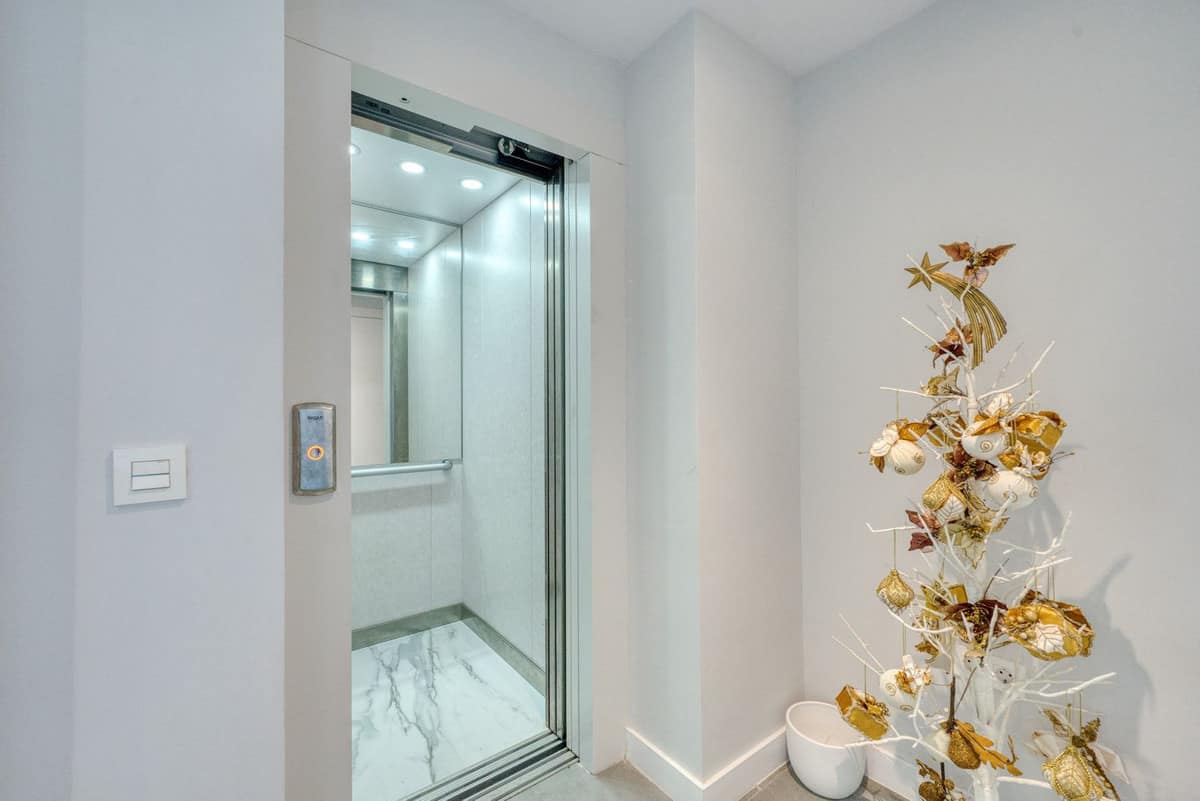 The spacious property spans four floors and features a magnificent sun terrace, giving the feeling of living directly in the forest. Fully renovated in 2022, the villa combines modern elegance with contemporary comfort. The bathrooms have been stylishly upgraded, and the open-plan American kitchen is seamlessly integrated into the living room.