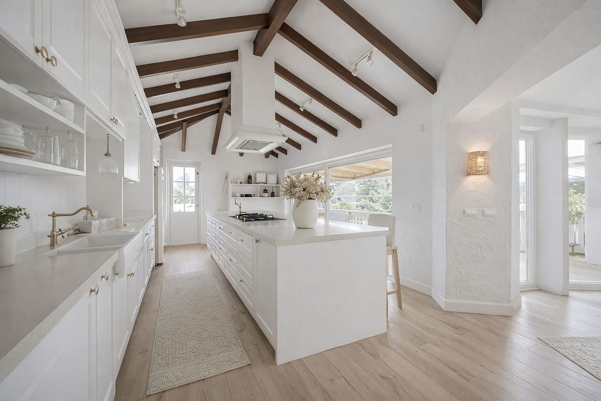 The property is built predominantly on one level and offers an excellent foundation for a complete renovation project. It features a fantastic distribution, with exceptionally generous living spaces, a large kitchen with vaulted ceilings, and three very spacious bedroom suites in the main house. In addition, there is a fourth bedroom suite located separately from the main residence, ideal for guests or staff accommodation.