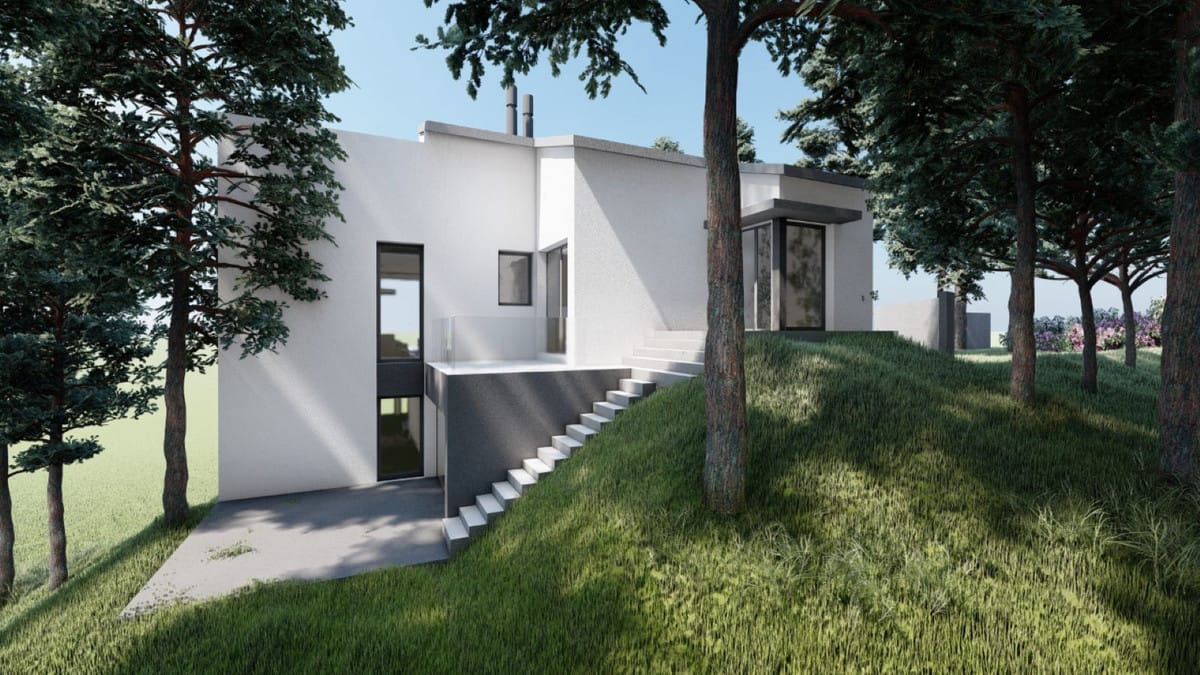 As you approach the house, you are greeted by a beautiful driveway that leads up to a modern and sleek architectural masterpiece. The house is designed to seamlessly blend in with its natural surroundings, with large windows and sliding glass doors that allow for plenty of natural light and breath taking views.