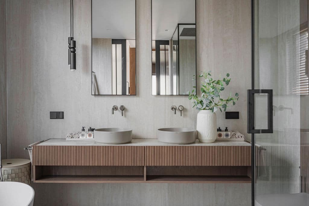 Built with high-quality materials and modern construction techniques, the property features elegant wooden finishes, brick walls for durability, gypsum pocket sliding doors and contemporary metal and glass doors and partitions, combining aesthetics with practicality.