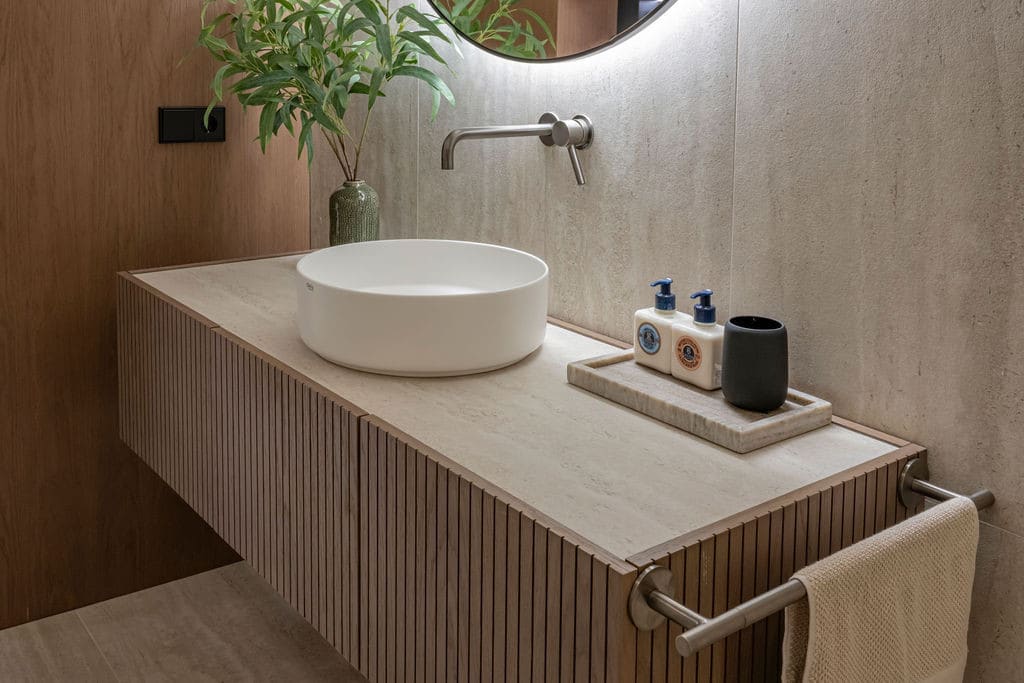 The basement level has been designed for both leisure and practicality, featuring an additional bedroom with walk-in wardrobe, a fully equipped gym and a private sauna, creating a wellness area within the home. This level also includes a garage with space for two cars, as well as a laundry room, technical room and additional storage areas.