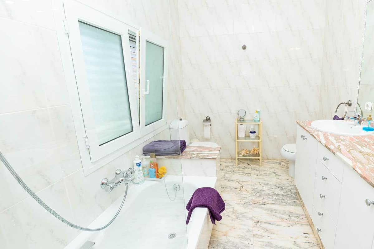 Upstairs there are three bedrooms which are double and almost triple the standard size. All of them have their own bathroom en suite. All the rooms and bathrooms are exterior, so they have plenty of light and ventilation. The master bedroom has a shower and hydro-massage bath in the bathroom.