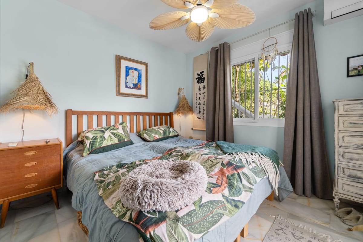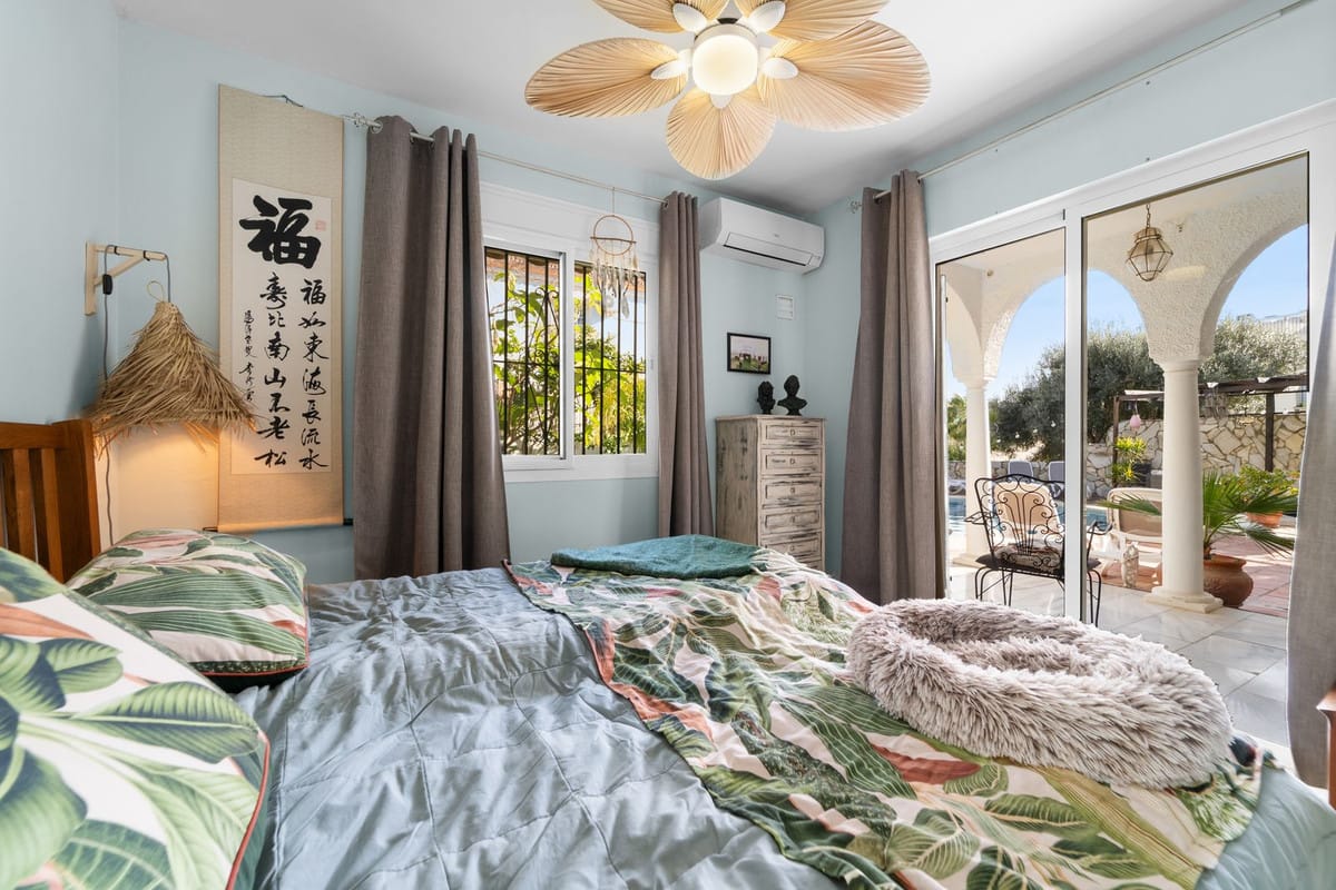 All three bedrooms are generously sized, and the villa includes two recently renovated bathrooms with walk-in showers. On the lower level, the former garage has been converted into a cozy and stylish living space, ideal for family gatherings or as an additional bedroom.