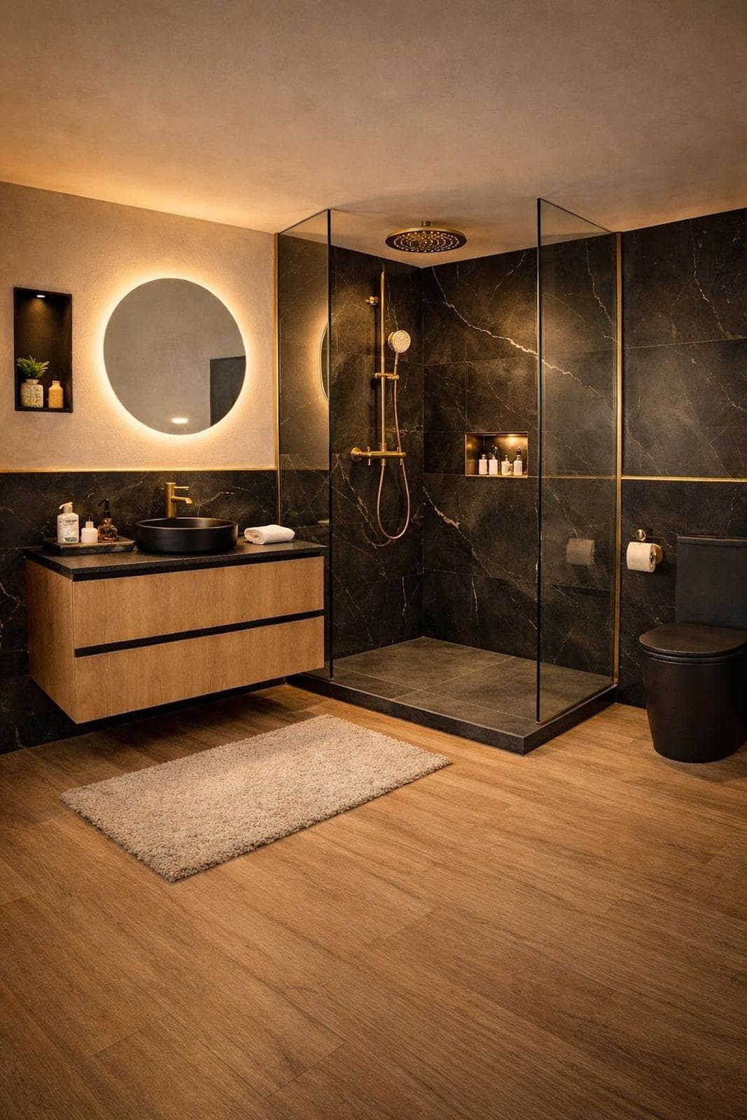 On the lowest floor there is a versatile space with a bedroom, bathroom with shower and a kitchen, all with windows and direct access to a large recreational terrace, private garden and pool area – perfect for entertaining or guest accommodation