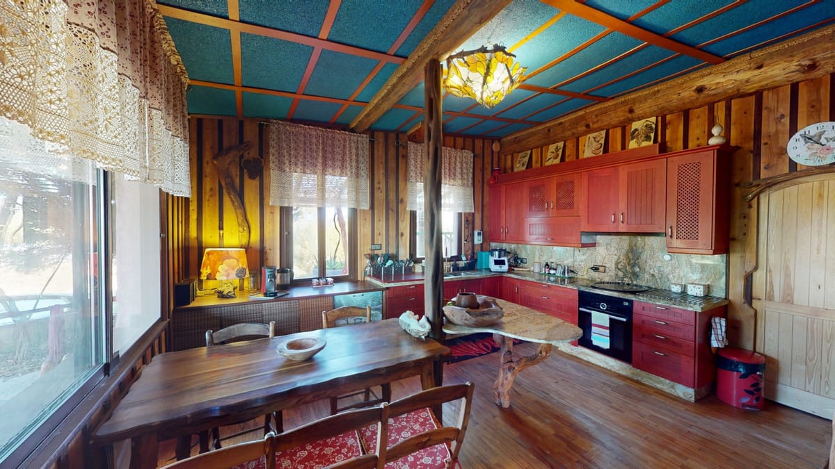 Between the Sierra de Almijara and the Mediterranean Sea lies this spectacular ecological finca of 4 hectares, bordering the natural park Maro-Cerro Gorde, which provides a haven of tranquillity and enormous privacy. The property has a plot of 35.955 square metres and offers a total of 270 square metres of construction. The property is completely surrounded by nature at its best, the property offers breathtaking views of the sea and the mountains, and all the buildings are completely hidden from each other thanks to its variety of trees, giving the feeling of living in a forest full of peace. The main house has a spacious living room at the entrance with a fabulous fireplace to heat the whole house, a fully equipped kitchen with a pantry, a dining room, a bedroom, a bathroom with a rain shower, a guest toilet, a reading and chill-out room, a sauna, a gym and an office that can be transformed into a large bedroom if needed. Leaving through the office we find a room built in a kind of igloo made of natural bricks. It also has a terrace perfect for relaxing and enjoying the surroundings. The secondary house offers a cosy space with a living-dining room and fireplace, a fully equipped kitchen, a bedroom, a bathroom and a private terrace which is hidden from the other property to provide a greater privilege of privacy. The guest residence has a bedroom, a kitchen and a bathroom. The finca has an equipped workshop of 25m2. It also offers a swimming pool area, a perfect area to take a peaceful break, thanks to the nature and the spaciousness of the pool it gives us the feeling of swimming in a lake in the middle of the forest. The property is made up of five buildings strategically distributed and set apart to guarantee maximum privacy and peacefulness for its residents. We also have a platform of approximately 300m2 with 360o views of the sea and the mountains. The estate has an extensive variety of fruit trees and flowers from all over the world, with 174 different varieties of trees. The property has water from a natural spring, a well and water from the irrigation community, it has 2 covered concrete water deposits of 125,000 litres and another water deposit of the spring water in the main house of 3,000 litres. The finca is reached by a 4 km asphalted road from the N-340 road. – It is 6 km from the beaches of the natural park. – 10 km from the centre of Nerja – 80 km from Malaga airport – 90km from the centre of Granada With all services and enjoying a real and varied sovereignty in what is considered to be the best climate in Europe, this place is truly a place to enjoy an excellent quality of life. We are pleased to be able to present this dream property to you soon, either personally or via virtual viewing. Because this world is unique – just like our Axarquía. In Andalusia. On the Costa del Sol. Here, on the sunny side of life…