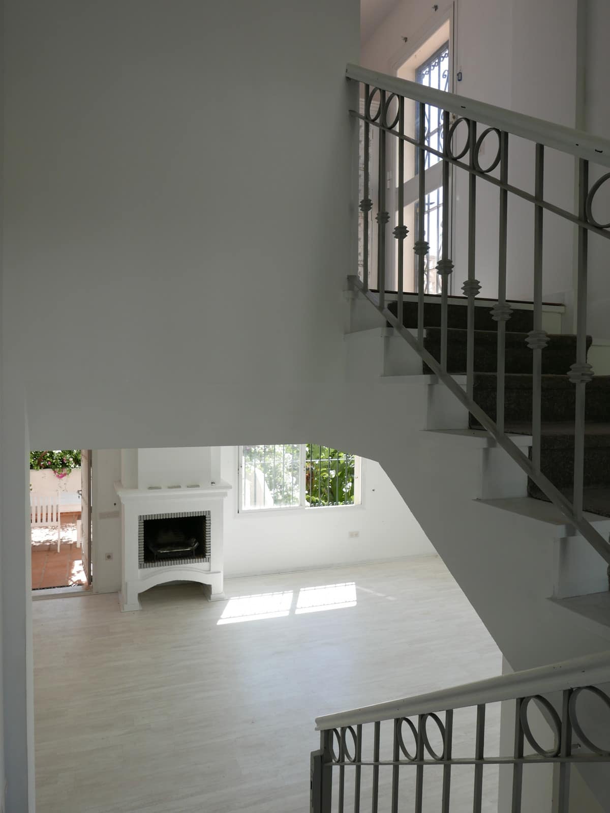 The first floor is dedicated to the main sleeping quarters. Here you’ll find the serene master bedroom with its en-suite bathroom and access to a private terrace furnished with a sofa, fireplace, and sunbed. Two additional guest bedrooms share a well-appointed bathroom, making this level perfect for family or visiting friends.