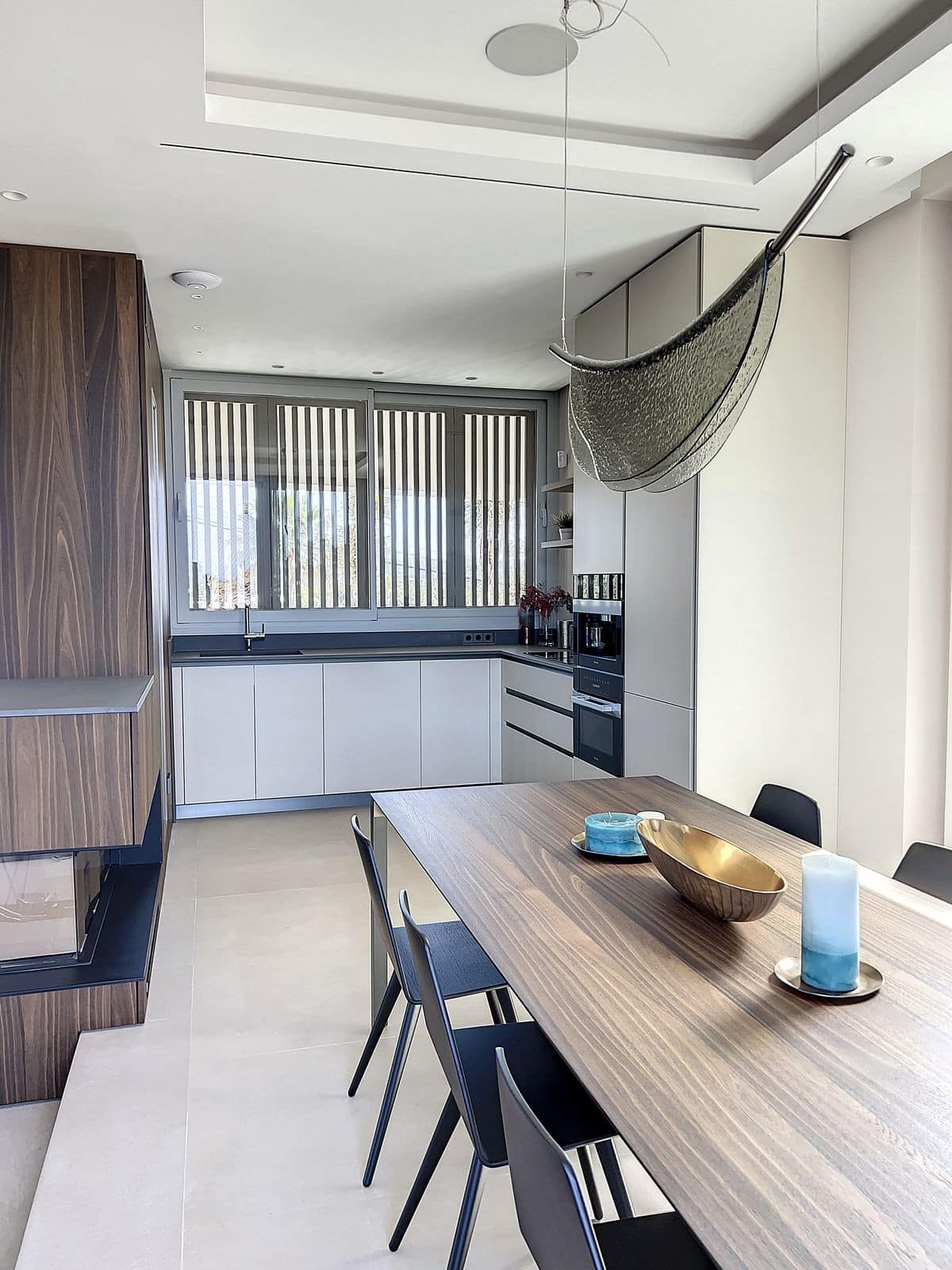The combination of the bright open plan kitchen and the living area with the big sliding windows overlooking the big plunge pool creates a nice. cosy and yet very bright airy living space.