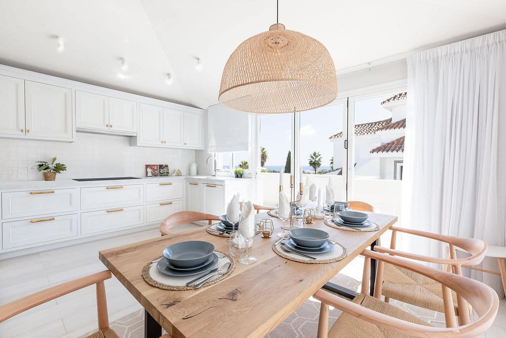 As you arrive, you are greeted by a spacious private courtyard, complete with a covered seating area—the perfect spot to relax or entertain. Step inside and you’ll discover a bright and airy open-plan living area seamlessly combining the lounge, dining room, and a modern fully-equipped kitchen. This elegant space flows naturally onto a sun-drenched terrace, ideal for al fresco dining while enjoying the views.