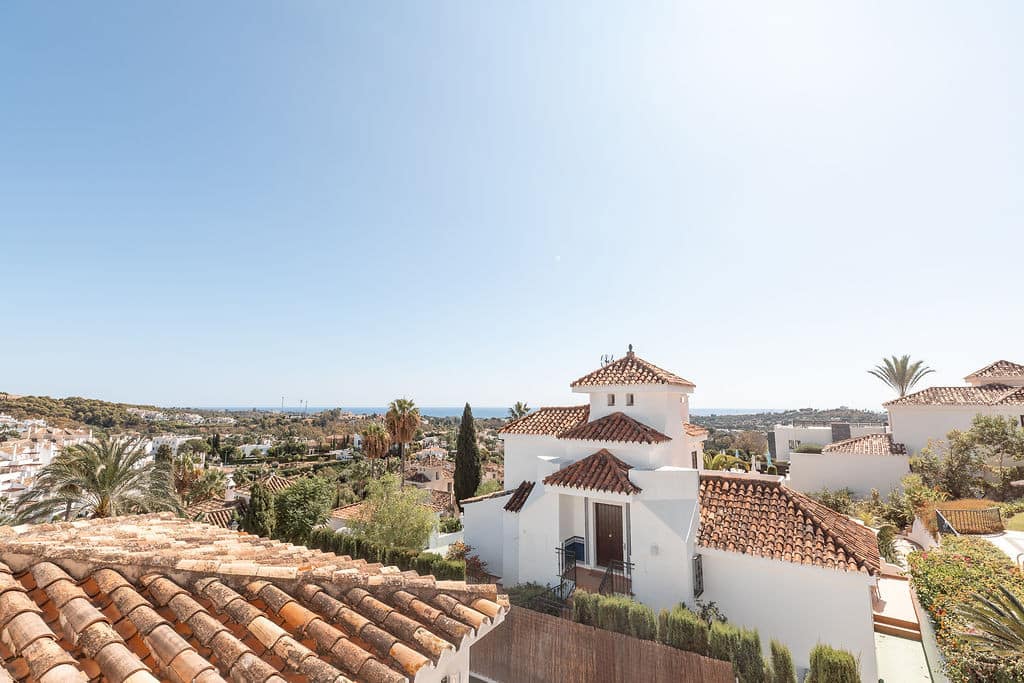 Welcome to this stunning corner semi-detached duplex townhouse, perfectly positioned in the heart of the prestigious Golf Valley and offering breathtaking panoramic views over Aloha Golf and the Mediterranean Sea. Located within the charming and tranquil community of La Retranca del Ángel, residents enjoy abundant parking, beautifully landscaped gardens, and a pristine communal pool. The setting is ideal—peaceful yet just moments away from local amenities, the beach, vibrant Puerto Banús, and the renowned Aloha College.