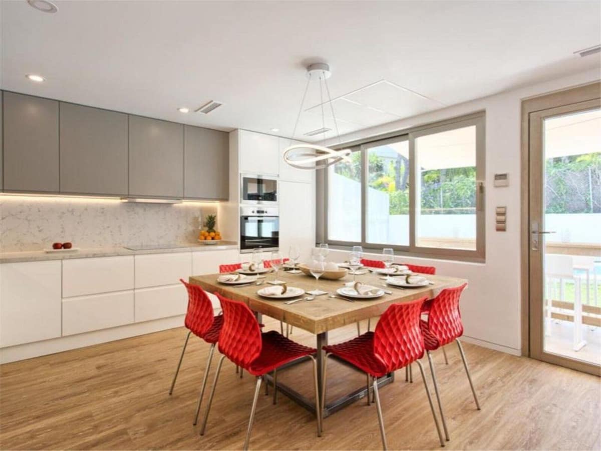 The house offers a layout designed for daily comfort, combining Scandinavian-inspired lines with Mediterranean details. It has approximately 176 m² indoors and a 93 m² solarium equipped with an outdoor kitchen, barbecue area, resting area, dining space, electric awning, and laundry room. In total, it adds up to 269 m², with three double bedrooms and an additional guest room, all with ensuite bathrooms, as well as several terraces and balconies that allow you to enjoy the sun throughout the day thanks to its multiple orientations.