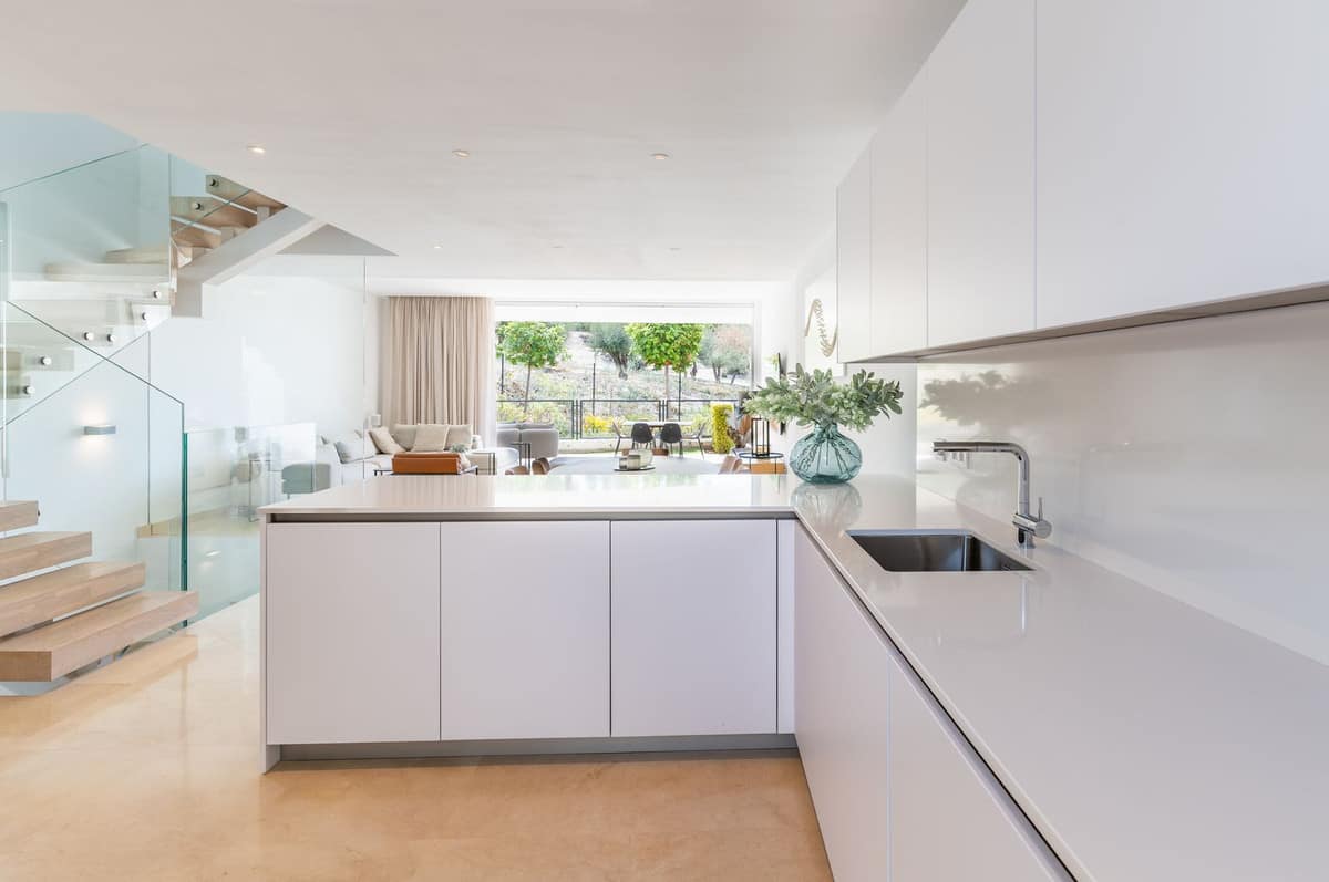 The townhouse also benefits from a large, rooftop terrace complete with a heated plunge pool, big sitting and dining areas and enjoys a beautiful sea view towards the bay of Marbella and Gibraltar. From the pool area, one can enjoy a beautiful sunset every evening.