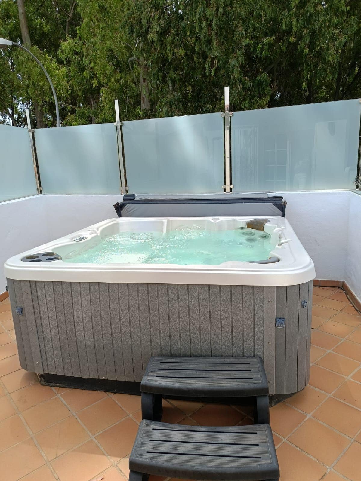 This beautiful villa with private pool, 4 bedrooms, 4 bathrooms, Jacuzzi, Garage. 2 floors. Is located in a premium location within walking distance to the beach and the famous restaurant Ancla San Pedro and other nice Chiringuitos.