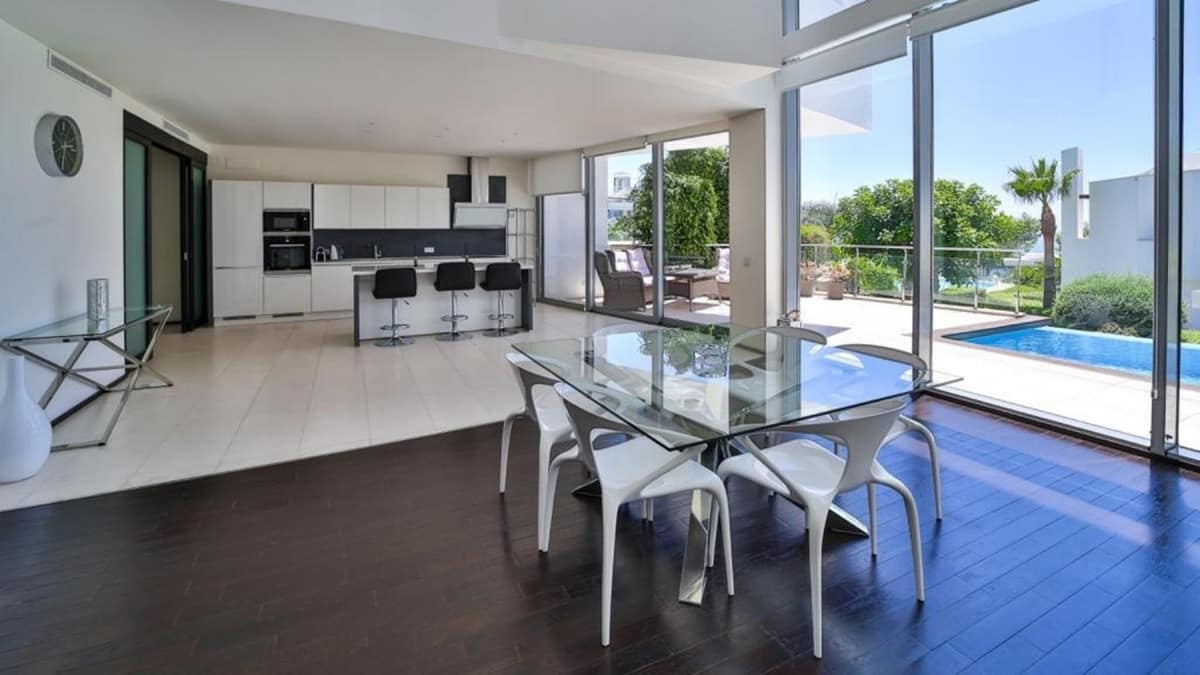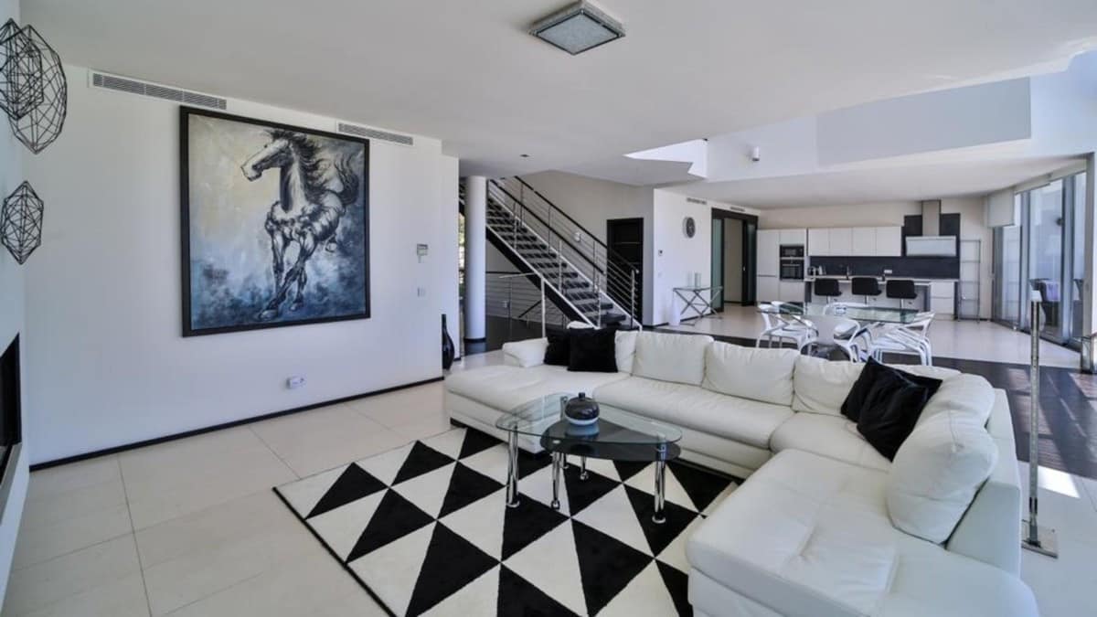The property consists of 5 bedrooms and 5 bathrooms in suite (all bathrooms has bath with hidromassage and separate shower), on WC for guests, huge living room In a same space with kitchen, 3 terraces (one rooftop), private infinty pool, garden, elevator, garage for three cars. The space is divided by two floors. Property is equipped with “smart house” system, which can be controlled from Ipad. Very efficient air conditioning and heating systems (heated floor). All the furniture and amenities are contemporary, high quality and design.
