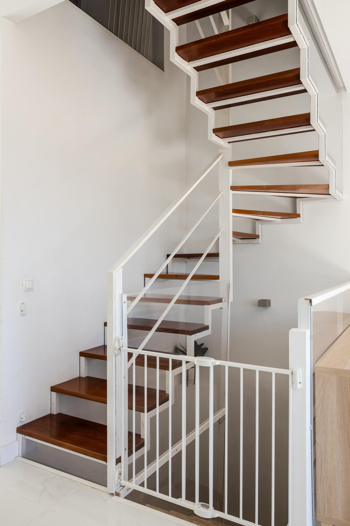 The house has four bedrooms, and its layout is designed to suit families, as the upstairs bedrooms are located close to each other. In this ready-to-move-in home, the interiors combine beautifully with the exteriors and terraces. The yard has its own plunge pool and a Finnish sauna, as well as direct access to the common infinity pool, which has wonderful panoramic views of the sea and the city.