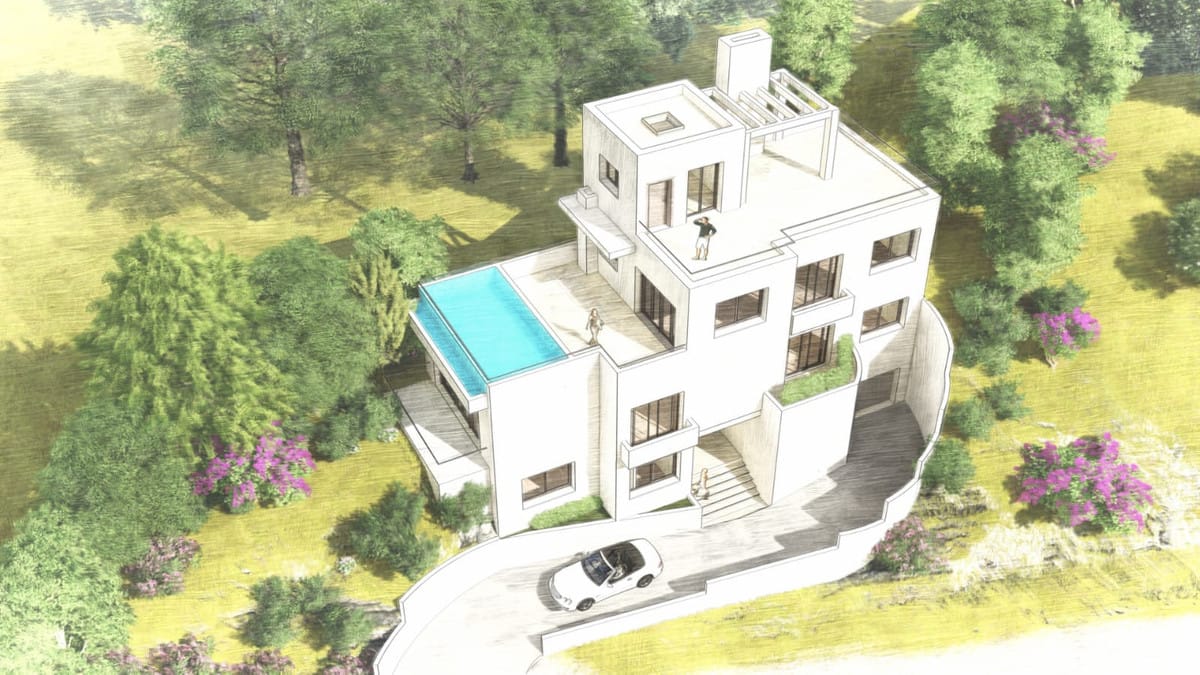 ✅ A fully paid project for a 314 m² luxury villa is included, spread across three floors plus a rooftop solarium.
