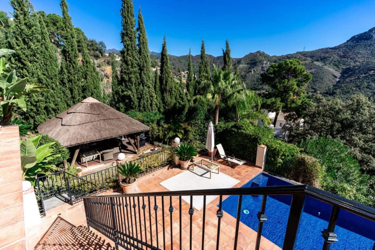 Mansion for sale in Monte Mayor, Costa del Sol, with impressive views of the sea, mountains, golf courses and forest. The total area of the mansion is 590 m², 5 bedrooms, 6 bathrooms, 3 integrated and fully equipped kitchens.