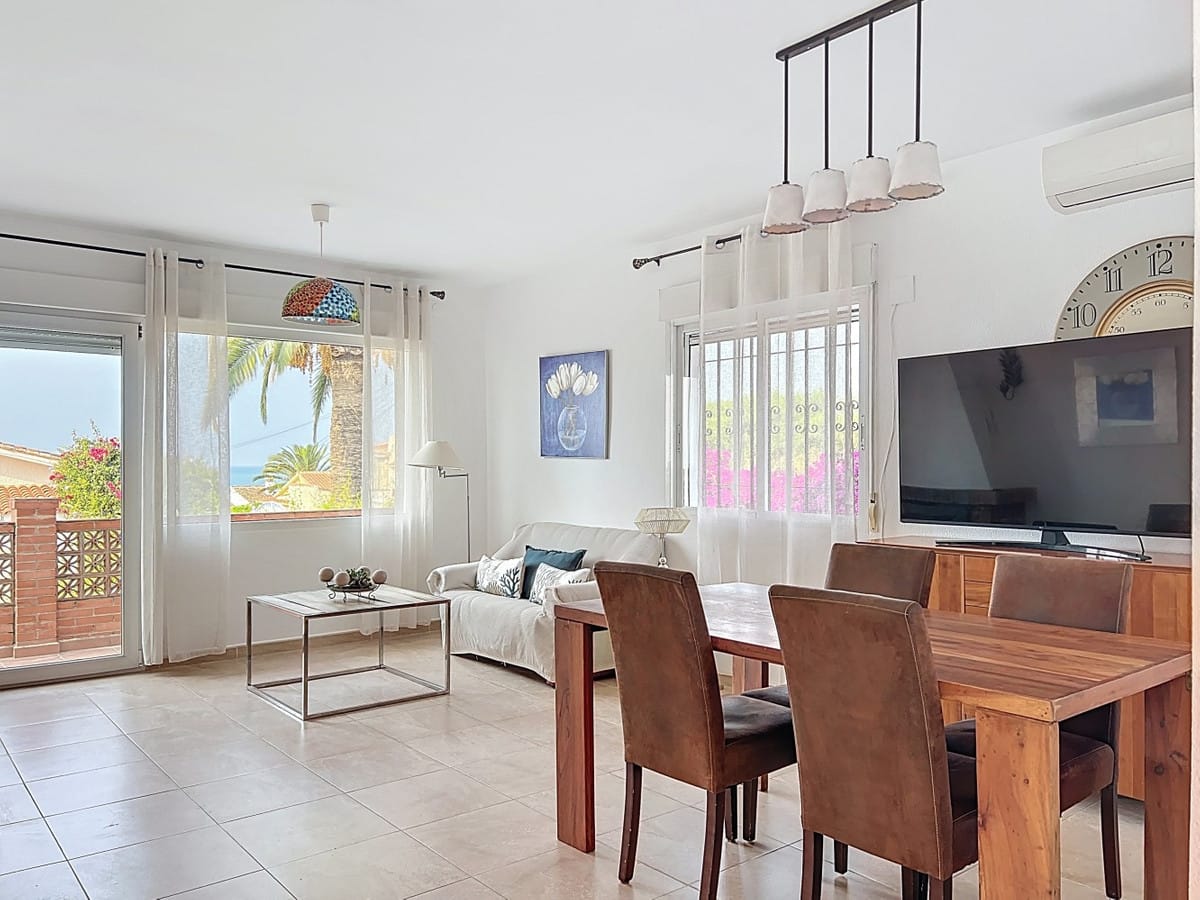 This charming two-story home in Caleta de Vélez offers 169.38 m2 of usable space and 220 m2 built, including terraces, in a privileged location with sea views and a swimming pool. The design blends Mediterranean charm with modern comfort, perfect for enjoying the relaxed lifestyle of the Costa del Sol. The ground floor (87.21 m2) features a bright, open-plan living and dining area with direct access to an outdoor space through large windows and a glass door. This level includes three bedrooms, a full bathroom, and integrated storage solutions, all finished in warm, light tones that enhance the natural light. The upper floor (69.89 m2) continues the harmonious style and includes two more bedrooms, an additional bathroom, a cozy living area with a fireplace, and access to a terrace with open sea viewsideal for relaxing or entertaining. The flooring combines light wood and ceramic, and natural light fills the entire home. Neutral colors and tasteful artistic accents give each room character without overwhelming the space. This versatile property is ideal as a main residence or holiday home, located in one of the most peaceful and sought-after areas of the Málaga coast. We are pleased to be able to present this dream property to you soon, either personally or via virtual viewing. Because this world is unique – just like our Axarquía. In Andalusia. On the Costa del Sol. Here, on the sunny side of life…