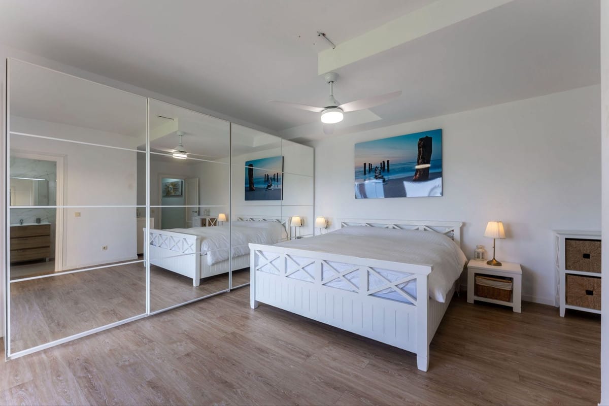 The home has been well maintained and upgraded, with refurbished bathrooms and utility room, wood-effect flooring throughout, new double-glazed windows, and neutral décor that enhances the abundance of natural light. Ceiling fans are installed in all rooms for added comfort.
