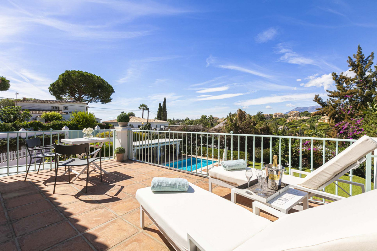 Villa for sale in Elviria, Marbella with 5 bedrooms, 5 bathrooms and 5 en suite bathrooms, with private swimming pool, private garage and private garden. Regarding property dimensions, it has 505 m² built and 1,500 m² plot. Has the following facilities air conditioning, central heating, fully fitted kitchen, guest room, barbecue, private terrace, kitchen equipped, living room, covered terrace, garden view, pool view, close to sea / beach, close to golf, uncovered terrace, games room, balcony, optional furniture, good condition, close to shops, close to town, close to schools, office room and partial sea views.