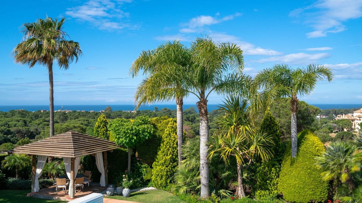 This villa in Elviria has a heated pool is perfect for those who love space, comfort and privacy. You also get security, views and proximity to beaches and amenities in one of Marbella’s most prestigious areas. You will definitely love this villa in Elviria because of the exquisite, one of a kind decor and all of the features/art, large saltwater heated pool and panoramic sea view. Complete with maid service 3 hours once a week.