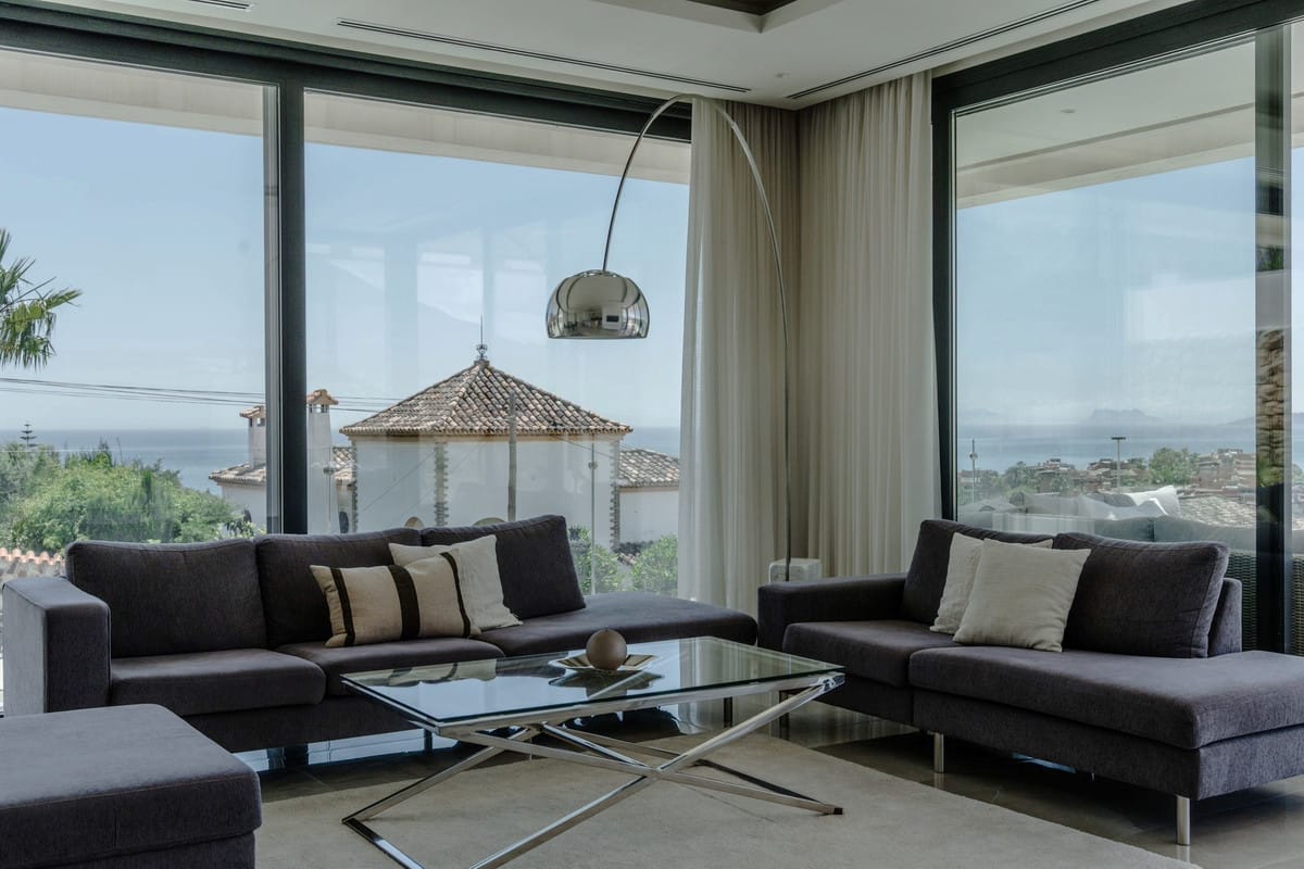 This villa is a new build turnkey villa project situated on a cul de sac in Urb. Buenas Noches (Upper zone) approx. 400 m2 to the beach, with access via a pedestrian bridge, about 15 min. walking distance. The plot size is 692 m2 and boasts panoramic views over the mediterranean sea, with views of the City of Estepona, The mountain of La Concha of Marbella and Sierra Bermeja Mountain of Estepona. You can see the waves crashing on the shore from the property. The property will be built on 3 floors plus the usable solarium.