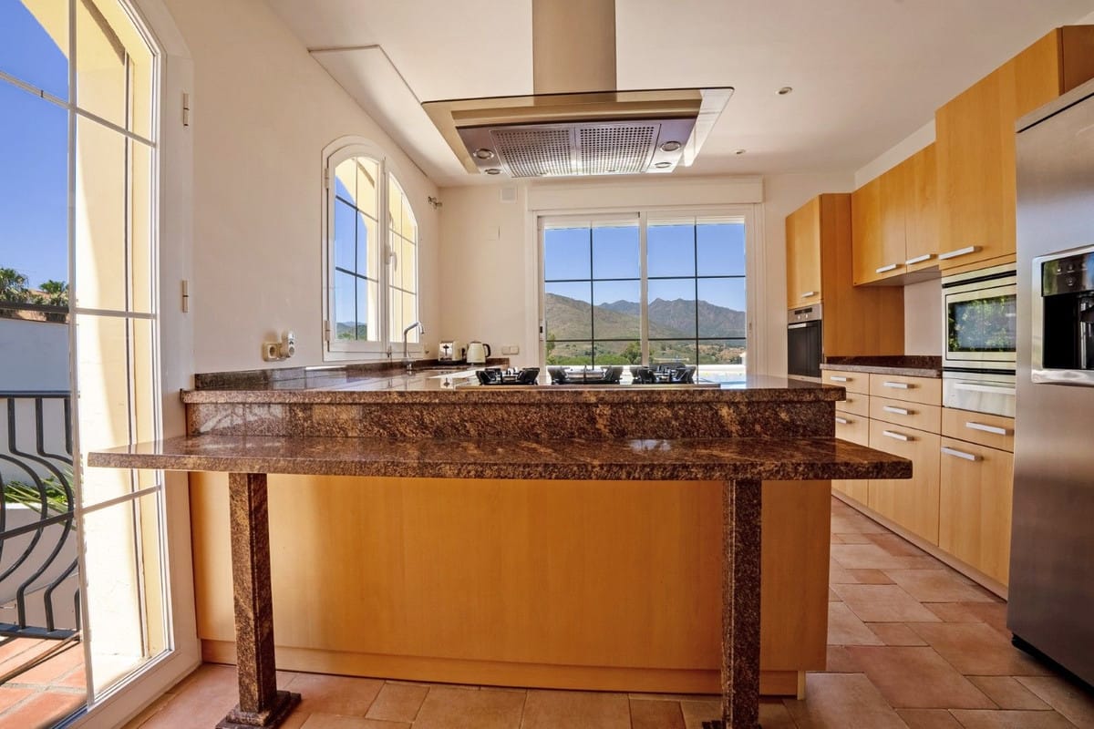 This high-quality villa is standing on a large plot of 1474m² situated on the top of the hill. Having the best possible location in this area, the villa is offering the complete privacy and unobstructed gorgeous views over the green hills of La Cala de Mijas and the Mediterranean Sea.