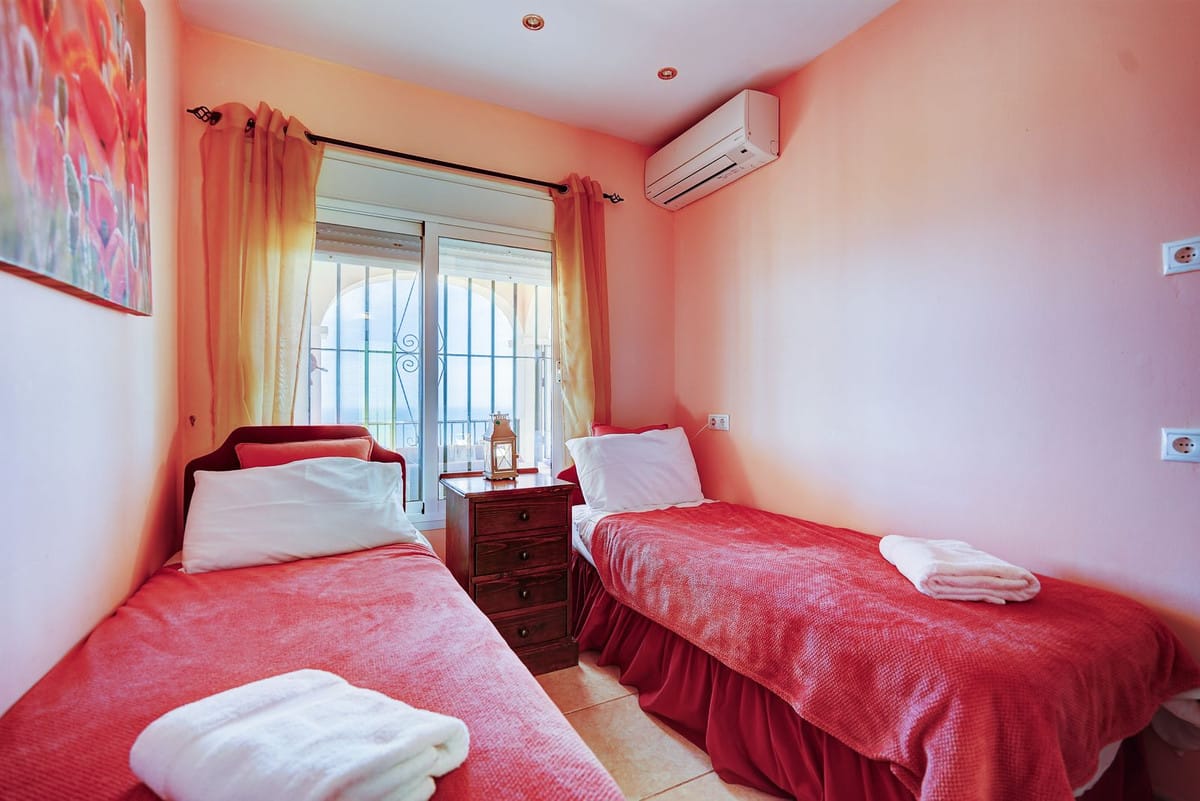 On the lower level, a fifth bedroom with ensuite bathroom, a cosy second lounge, and an additional kitchen create the perfect setup for a self-contained guest apartment. There’s also an office, a fourth bathroom, plenty of storage space, and room to add more bedrooms if desired. Outdoor features include spacious terraces, a lawned garden, and a large private swimming pool—perfect for enjoying the Costa del Sol sunshine. The home also benefits from air conditioning, double glazing, fibre-optic internet, a double garage, and is offered part furnished.
