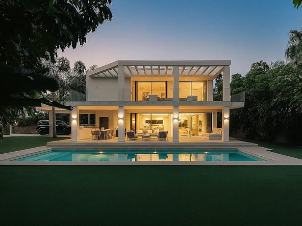Perched majestically overlooking La Quinta golf towards the Mediterranean, this recently redecorated five-bedroom villa epitomises contemporary luxury living. Designed with attention to detail, the residence seamlessly blends sophisticated indoor spaces with expansive, lavish terraces, creating a harmonious flow between interior comfort and outdoor splendour.