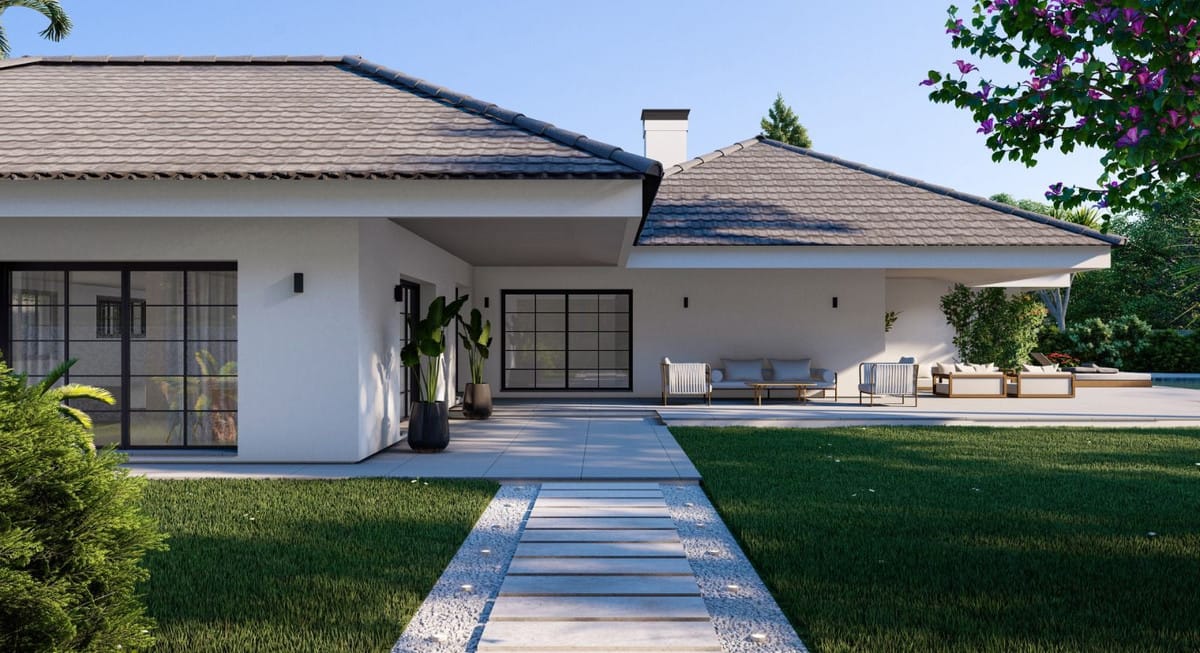 The outdoor areas are designed for relaxation and entertainment, featuring a private swimming pool, landscaped gardens, spacious terraces, a covered porch, and a BBQ area — perfect for enjoying the Andalusian sunshine.