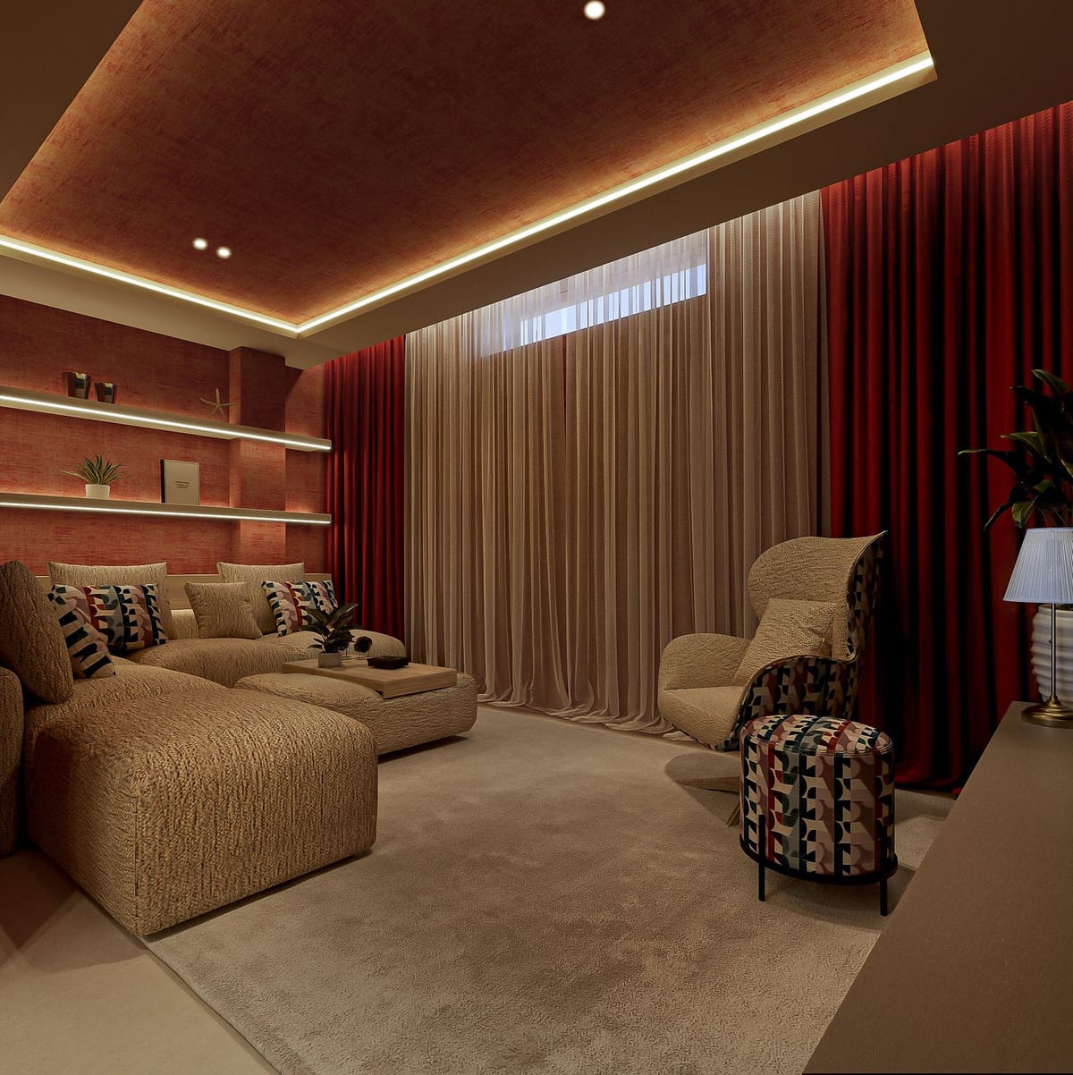 One bedroom is currently configured as an intimate cinema and games room with a large-screen TV, sound system and ambient LED lighting, and can easily be converted back into a full fifth en-suite bedroom. Lighting has been carefully designed, with most ceiling and ambient lighting installed on dimmer systems to create flexible atmospheres throughout the home.