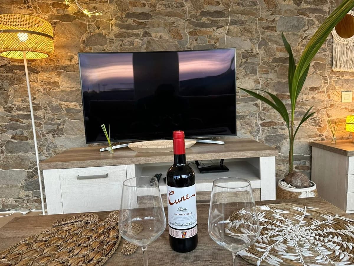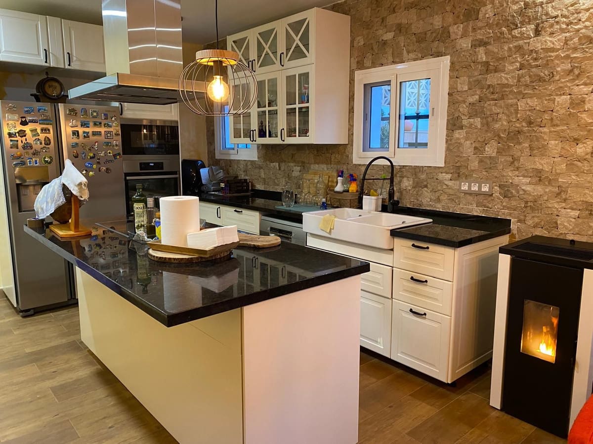 All the bedrooms and the living room of the villa have air conditioning and wardrobes, and the house has photovoltaic panels. On the ground floor, there is a pellet stove.