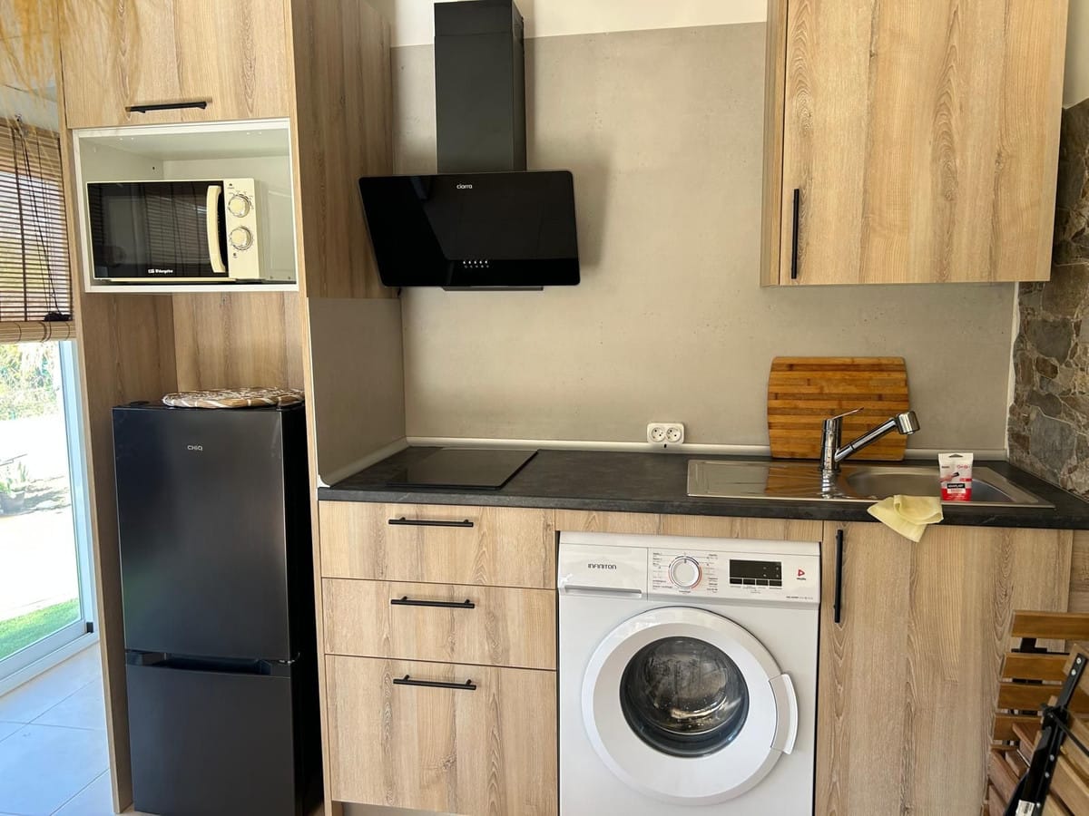 From the spacious terraces that surround the entire property, you descend a beautiful and wide stone staircase to access the pool area (with Hawaiian pergola and sunshade, outdoor kitchen and stone barbecue, large jacuzzi for 5 people, shower and toilet) and the private apartment, a true little gem for friends and family or for renting out. The wonderful 30-square-meter studio, decorated in Bali/Polynesian style, offers a bathroom with a large shower, an open-plan kitchen, a living area with a double sofa bed, and a sleeping area with a double bed. The terraced area around the pool (5×10 meters) is ideal for spending hot summer days and enjoying cool evenings under the stars. Around the pool, there is also an area with lemon trees, ideal for creating a vegetable garden.
