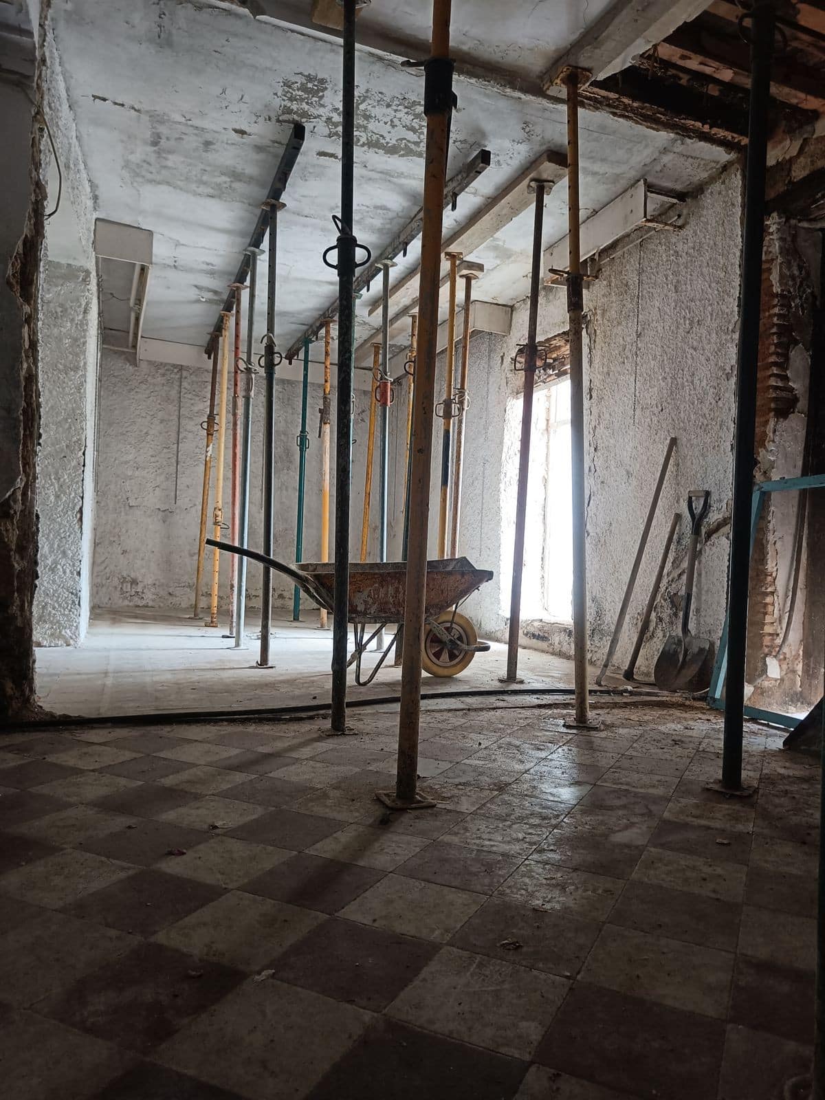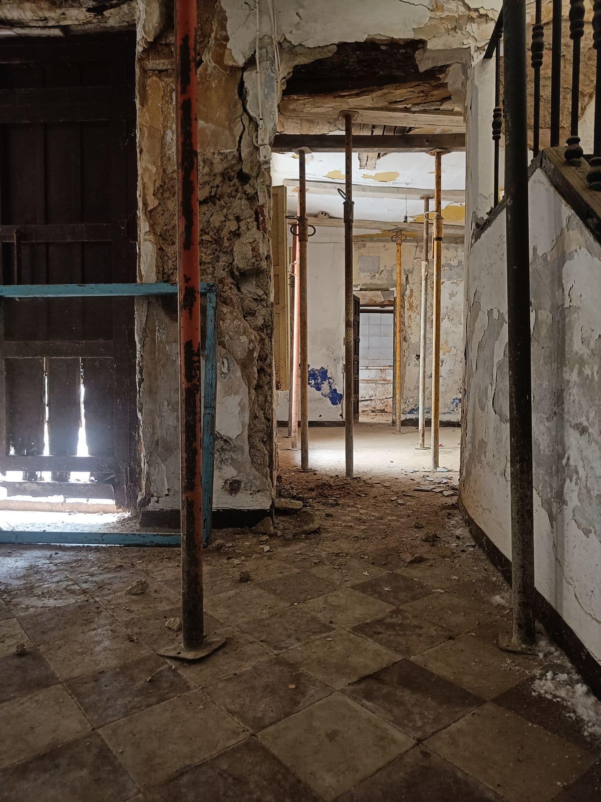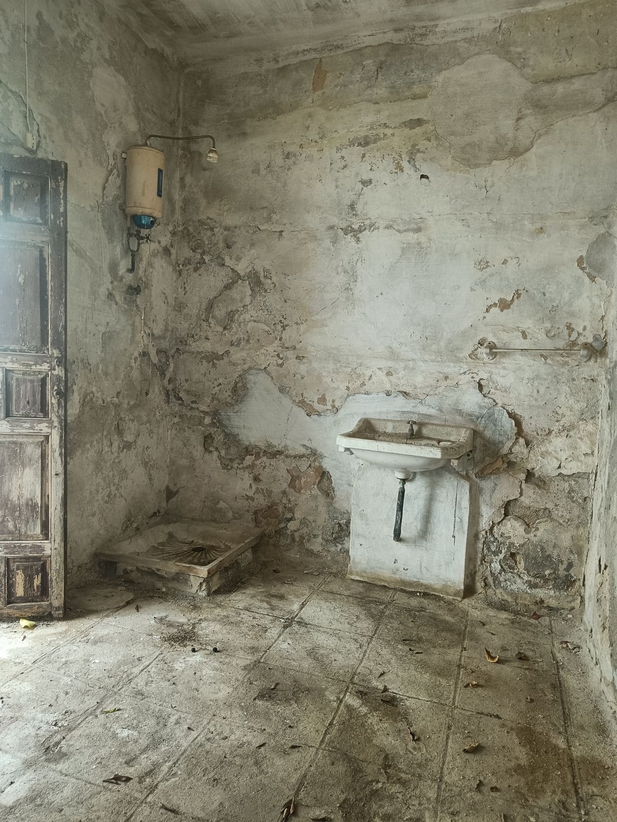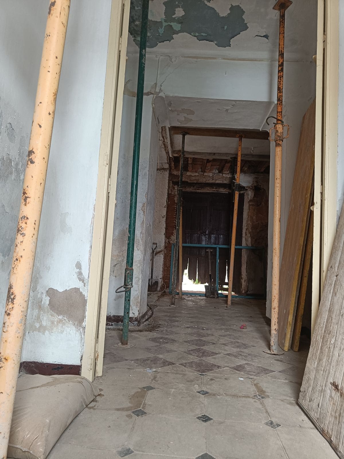 The ground floor features a spacious entrance hall, a bedroom, and the former kitchen area. From here, you can access a patio with an outdoor bathroom and a secondary entrance leading to a small private garden, perfect for enjoying the Mediterranean climate.