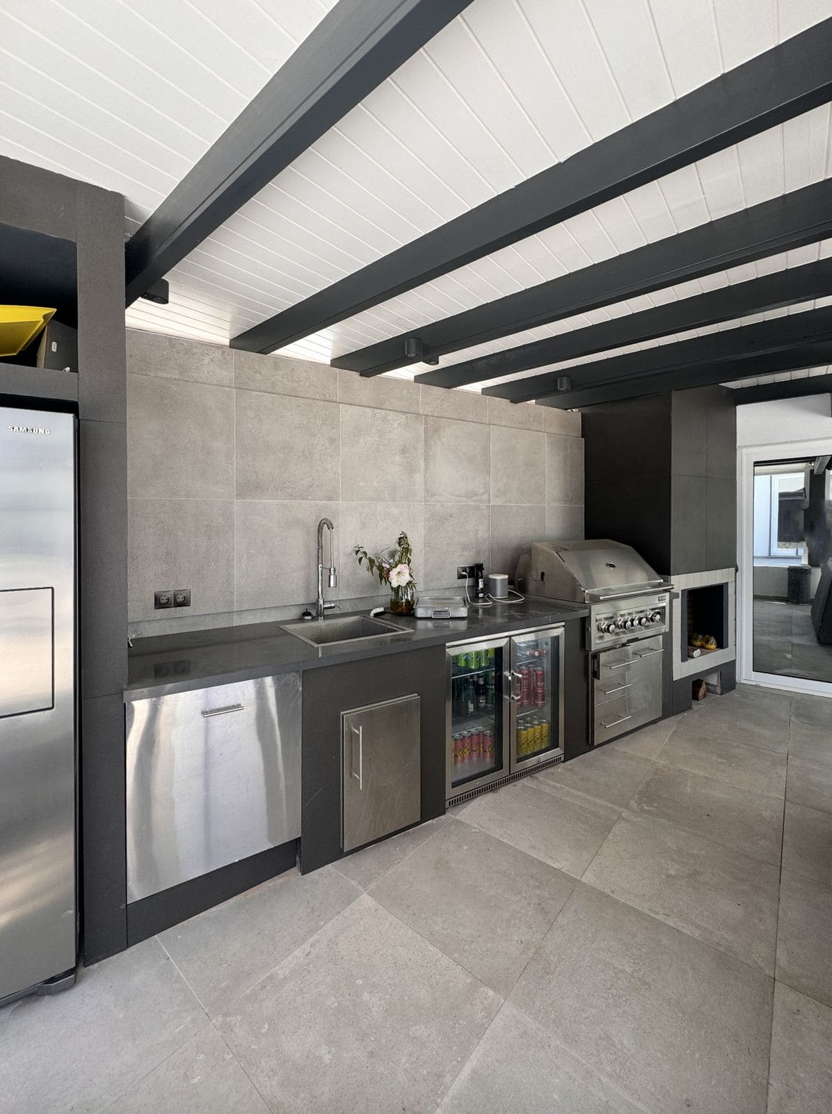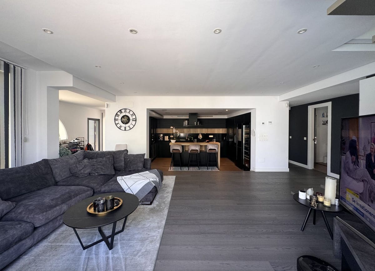 Inside, the home stands out for its refined selection of materials and meticulous attention to detail. Chevron-patterned wooden flooring brings warmth and character to every room, while the minimalist Danespan kitchen offers both functionality and style, creating an ideal space for everyday living and hosting guests. The property features five spacious bedrooms, thoughtfully distributed to ensure comfort for family and visitors alike.