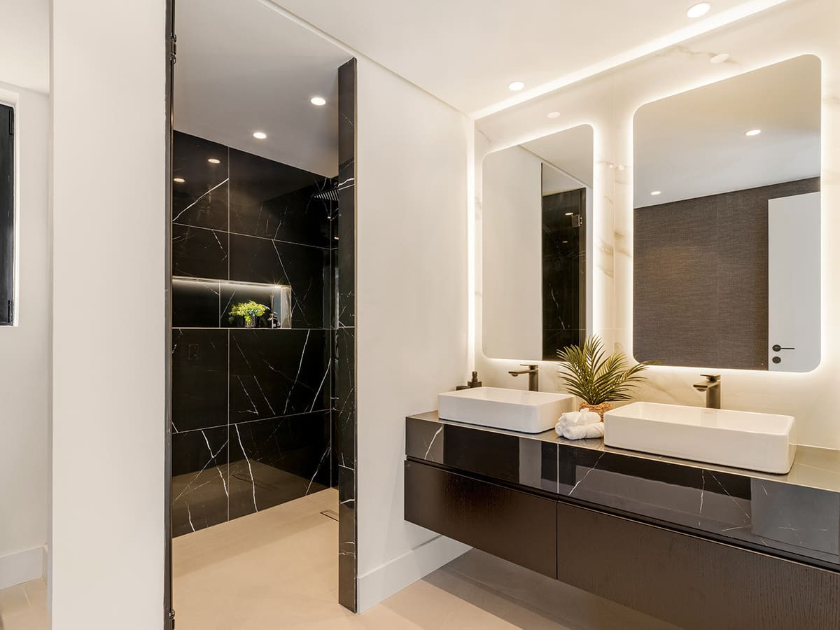 These include a huge garage, a driveway with a car turning plate, a spa with sauna and steam room, an state of the art indoor gym as well a home cinema – all with direct access to the garden.
