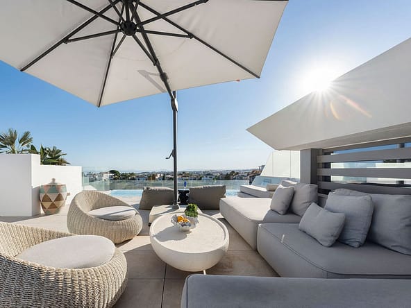 Located in the sought-after area of Nueva Andalucía, just minutes from Puerto Banús, Villa Jardin is a beautifully presented contemporary villa combining style, comfort, and functionality. The home features open-plan living areas with large sliding doors that seamlessly connect the interior with the outdoor spaces. Natural light fills the spacious lounge and dining areas, while the modern kitchen is equipped with sleek cabinetry and a generous island for casual dining.