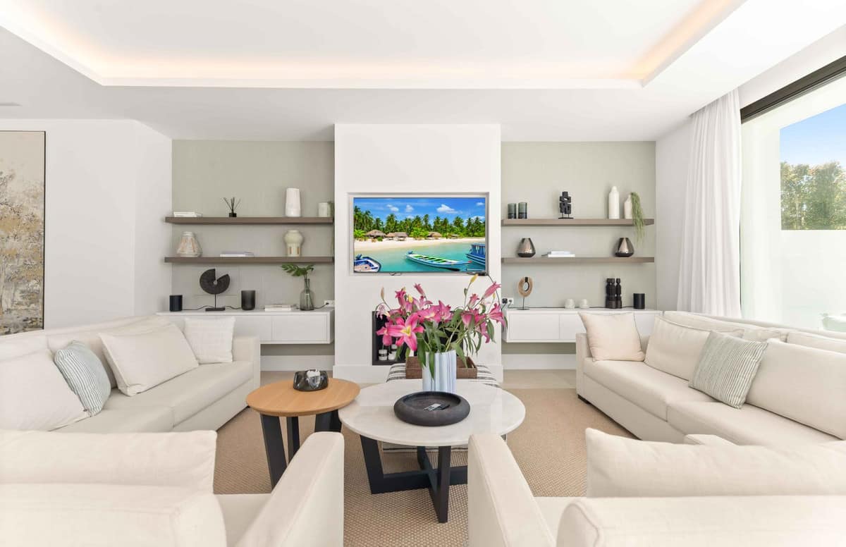 The property presents a contemporary architectural profile within a residential area of San Pedro Alcántara, positioned close to golf, shops and schools.A fireplace adds an additional focal point within the living area, while a basement level provides additional usable space for flexible use. The property also includes a private jacuzzi, storage areas and a utility room, contributing to practical day-to-day living.