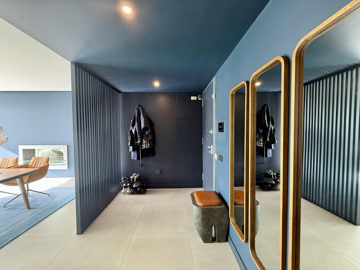The middle floor accommodates the bedroom level, featuring four spacious bedrooms and two full bathrooms. The master has its own en-suite bathroom and refined finishes. Designed for comfort and privacy, this level offers a calm and restful atmosphere, with several bedrooms enjoying open views over the surrounding landscape.