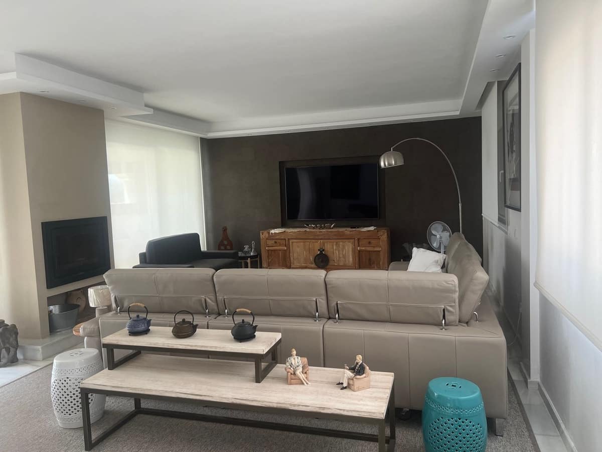 Occupying a generous 1,786 m² plot, the villa is accessed via a long private driveway that ensures complete privacy. Inside, the 550 m² layout is spacious and thoughtfully planned, offering five large bedrooms, multiple living and entertaining areas, and seamless transitions to outdoor spaces. There are 265 m² of open terraces, 64 m² of covered terraces, and a stunning rooftop terrace—perfect for sunset views and alfresco evenings.