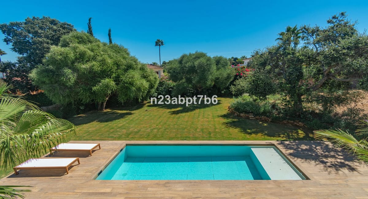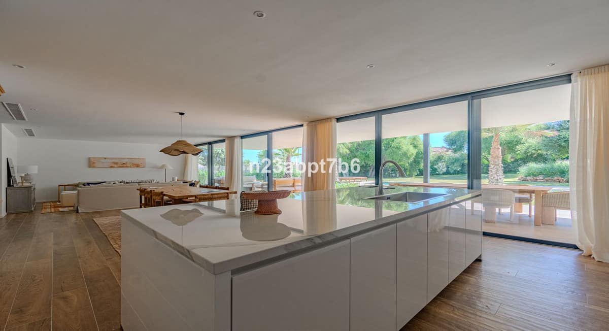 Outdoors, the villa boasts a private swimming pool, beautifully landscaped gardens, and generous terraces—perfect for outdoor entertaining and relaxation in Sotogrande’s privileged climate.