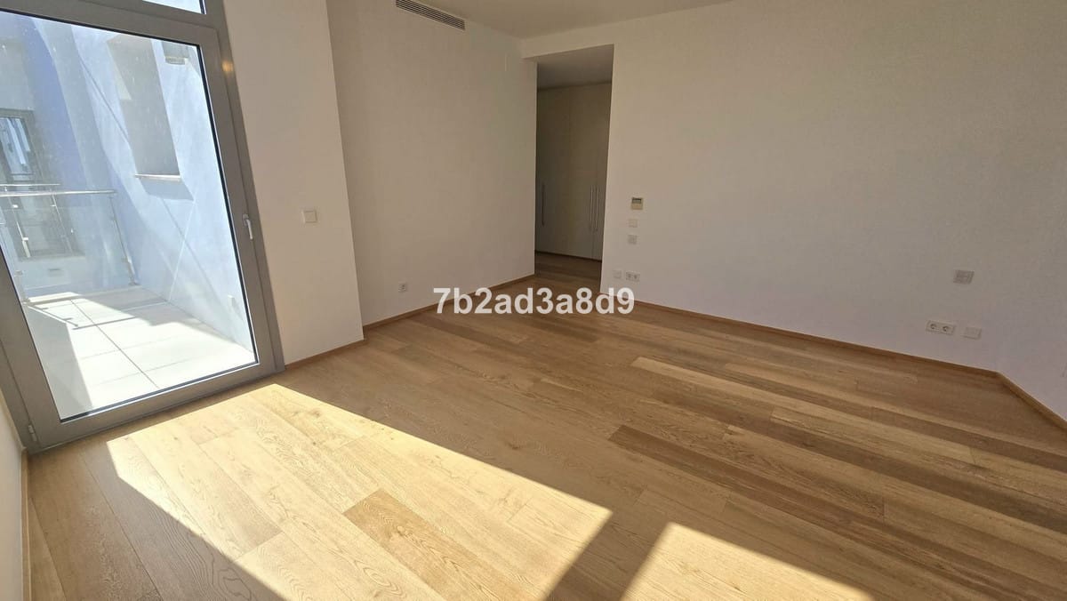 All bedrooms enjoy access to a wraparound terrace and offer built-in wardrobes, large glass doors, and light wood flooring. The elegant bathrooms are finished to a high standard with walk-in showers, bathtubs, and heated towel rails.
