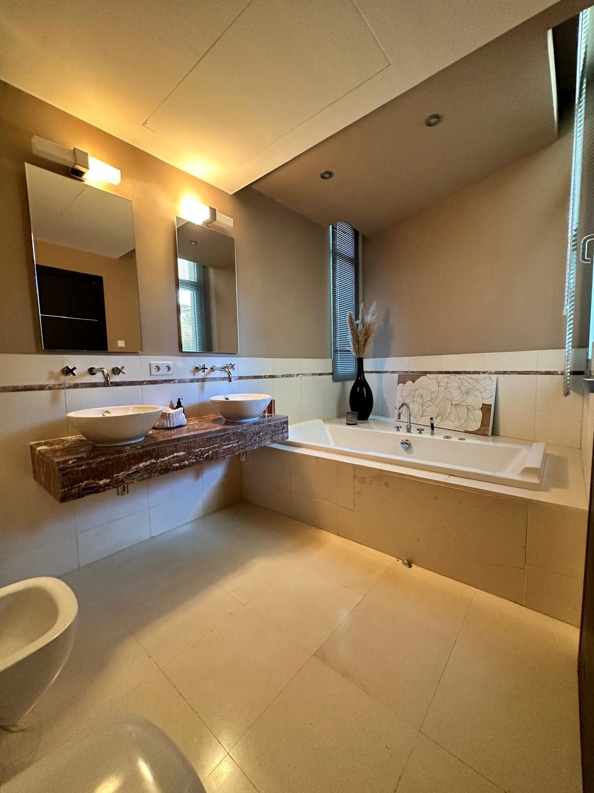 Situated in the prestigious Meisho Hills of Marbella Golden Mile, Marbella, Malaga, this luxury semi-detached house epitomises elegant living. Boasting five spacious bedrooms, each with its own en-suite bathroom, this property offers an unparalleled level of comfort and privacy. With a built area of 800m², every corner of the house is meticulously designed to reflect a blend of opulence and practicality. The property includes a private garage and a guest toilet for added convenience.