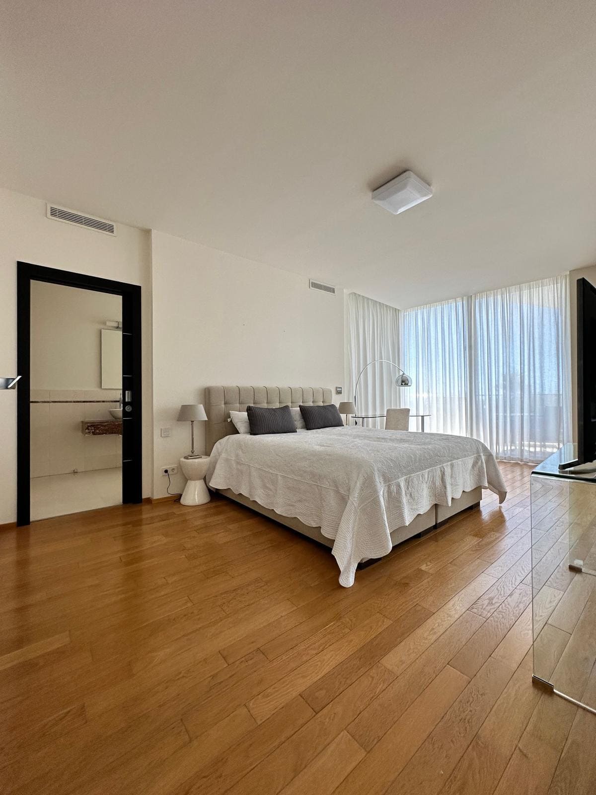 The residence features both a private and heated indoor pool, as well as communal garden access, making it perfect for those who appreciate both solitude and community. Amenities near the property include proximity to the beach, town, and local schools, making it an ideal setting for both leisure and family life. Security is paramount with a 24-hour security service, surveillance cameras, and a secure gated community entrance, ensuring peace of mind for its residents.