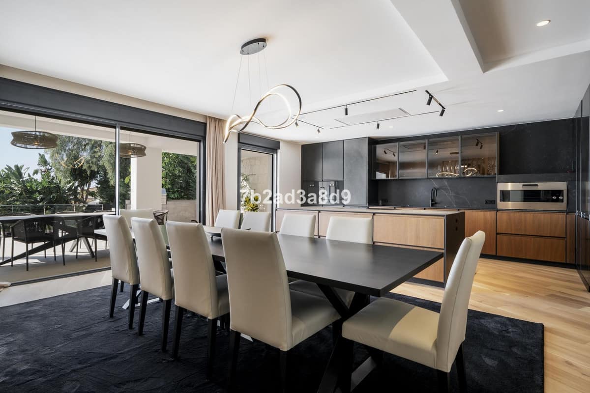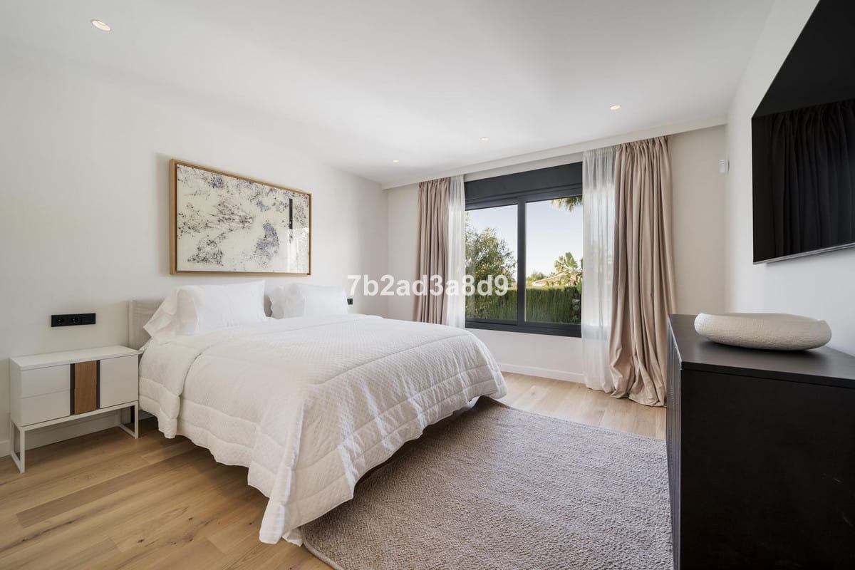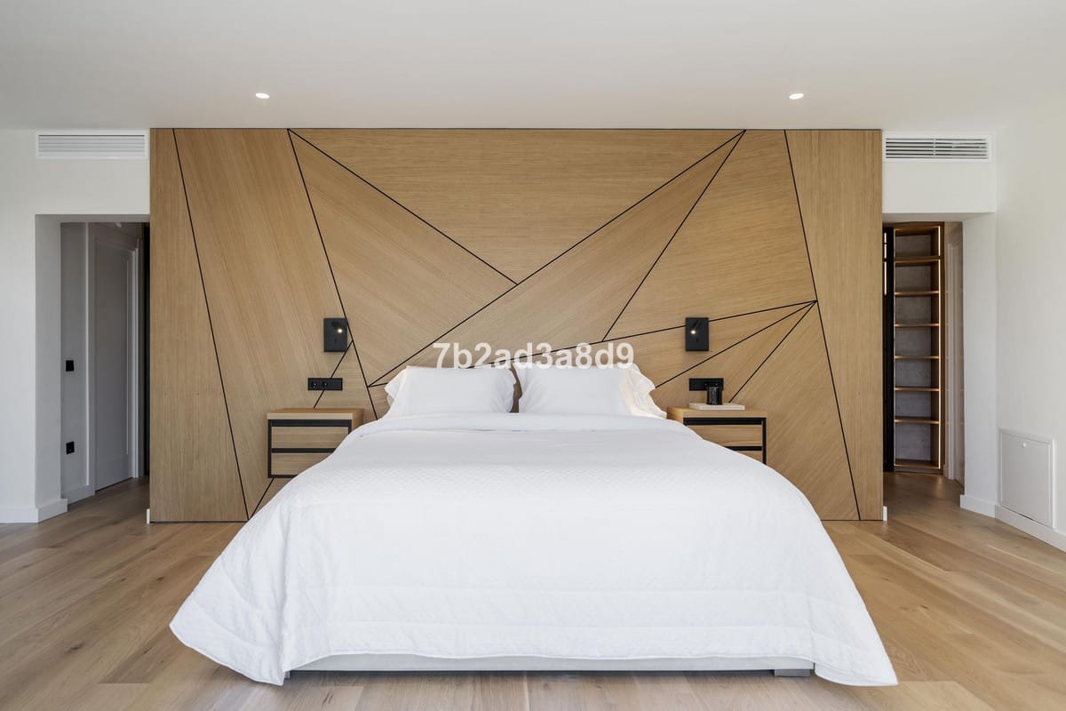 The upper level is reserved for the primary suite, complete with walk-in dressing room, luxurious bathroom, and terrace with panoramic views. An additional guest suite and serene home office complete this floor, all connected by an elevator. This residence epitomizes the highest standard of Marbella living, where contemporary design meets natural elegance.