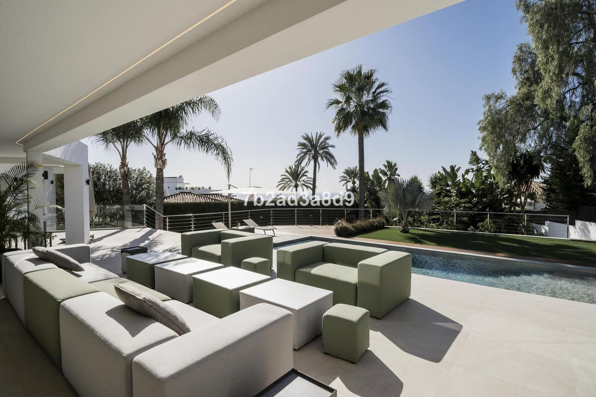 This outstanding contemporary residence, situated in the prestigious Marbella Hill Club just moments from the Golden Mile, embodies modern sophistication and architectural excellence. Designed by Villaroel and built by B Solis, it harmoniously combines natural stone, glass, and geometric precision across three levels, surrounded by lush gardens curated by Esspora. The result is a serene retreat that balances privacy, openness, and scenic beauty.