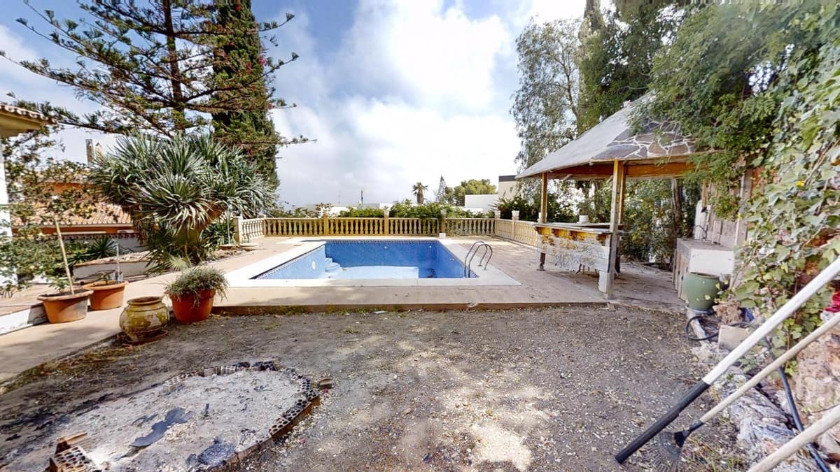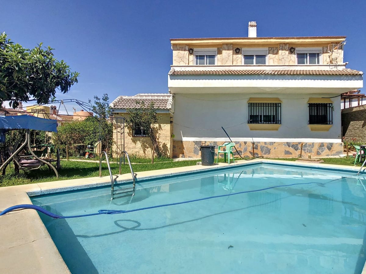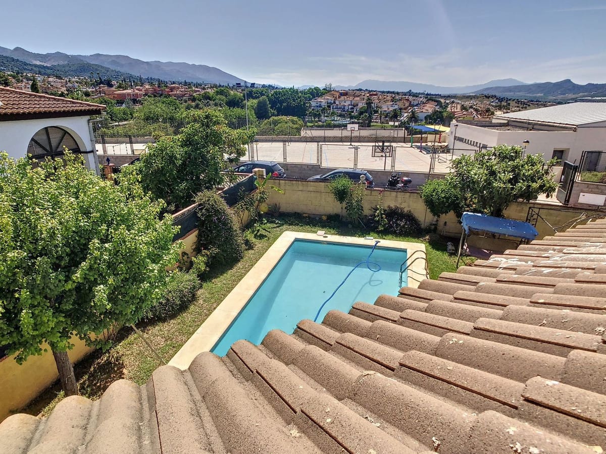 Spectacular property for sale on a 4000m2 fenced urban plot. The house has over 400m2 of living space distributed on the ground floor with 4 living rooms, a fitted kitchen with pantry, two bathrooms and a dining room. On the first floor, there are 6 bedrooms with wardrobes, two bathrooms with showers, all with air conditioning. Outside, there is a beautiful garden with many fruit trees, a vegetable garden, a huge porch of over 60m2, a swimming pool, several storage rooms, an Andalusian-style patio, a private well and mains water, an automatic gate, and an asphalt road leading to the property. With all amenities nearby, it is perfect for a large family or holiday rentals. It is located in a very quiet area, just a few meters from the town center on foot. It is located just 10 minutes from the International Airport of Malaga, 10 minutes from beaches, 20 minutes Malaga city, 10 minutes from the golf courses.