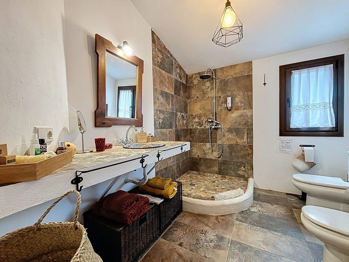 Discover the charm of countryside living with this spacious country house in the hills of Comares. This unique property is one house with two independent living spaces, offering flexibility for families, guests, or rental opportunities. The main living area on the ground floor features five bedrooms, two bathrooms, a kitchen, and a spacious living/dining room. Large windows allow natural light to fill the rooms, creating a warm and inviting atmosphere. Upstairs, the loft apartment includes its own kitchen, living/dining area, bathroom, and one bedroomperfect for guests or use as a rental unit. The ground floor also has two separate entrances, making it possible to divide the space into two apartments: one with two bedrooms, and the other with three. An ideal option for multi-family use or income potential. Outside, youll find a private pool, barbecue area, covered terrace, and plenty of space to relax and enjoy the peaceful mountain views. Additional features include a storage room, laundry room, air conditioning, and a chimney for year-round comfort. Whether you're looking for a family home, a tranquil holiday retreat, or an investment in rural Andalusia, this property offers endless potential in a stunning setting. Contact us today to arrange your viewing and experience the beauty of Comares. We are pleased to be able to present this dream property to you soon, either personally or via virtual viewing. Because this world is unique – just like our Axarquía. In Andalusia. On the Costa del Sol. Here, on the sunny side of life…